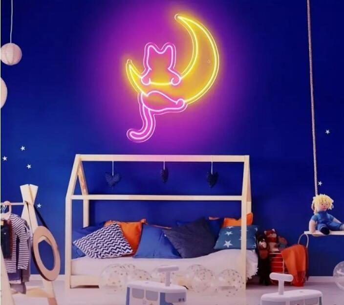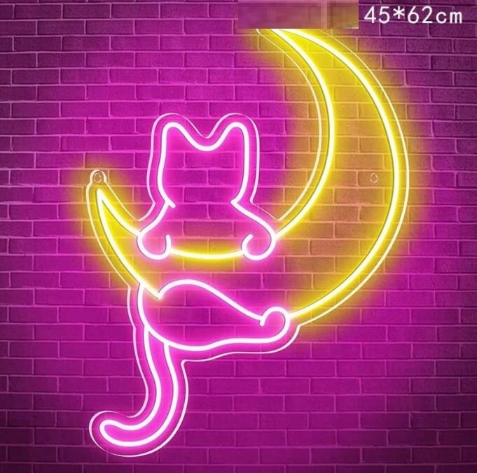 新入荷月と猫 ネオンサイン LEDイルミネーション オシャレ