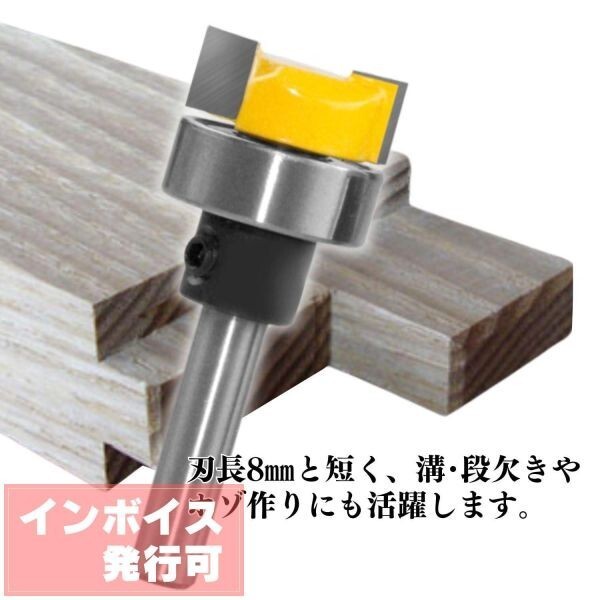 4本ともベアリング(コロ付)付きですので、テンプレートを使用した「ならい加工」で効率的に 浅彫り 浅堀り 溝欠き 段欠き ほぞ加工 などが可能。
