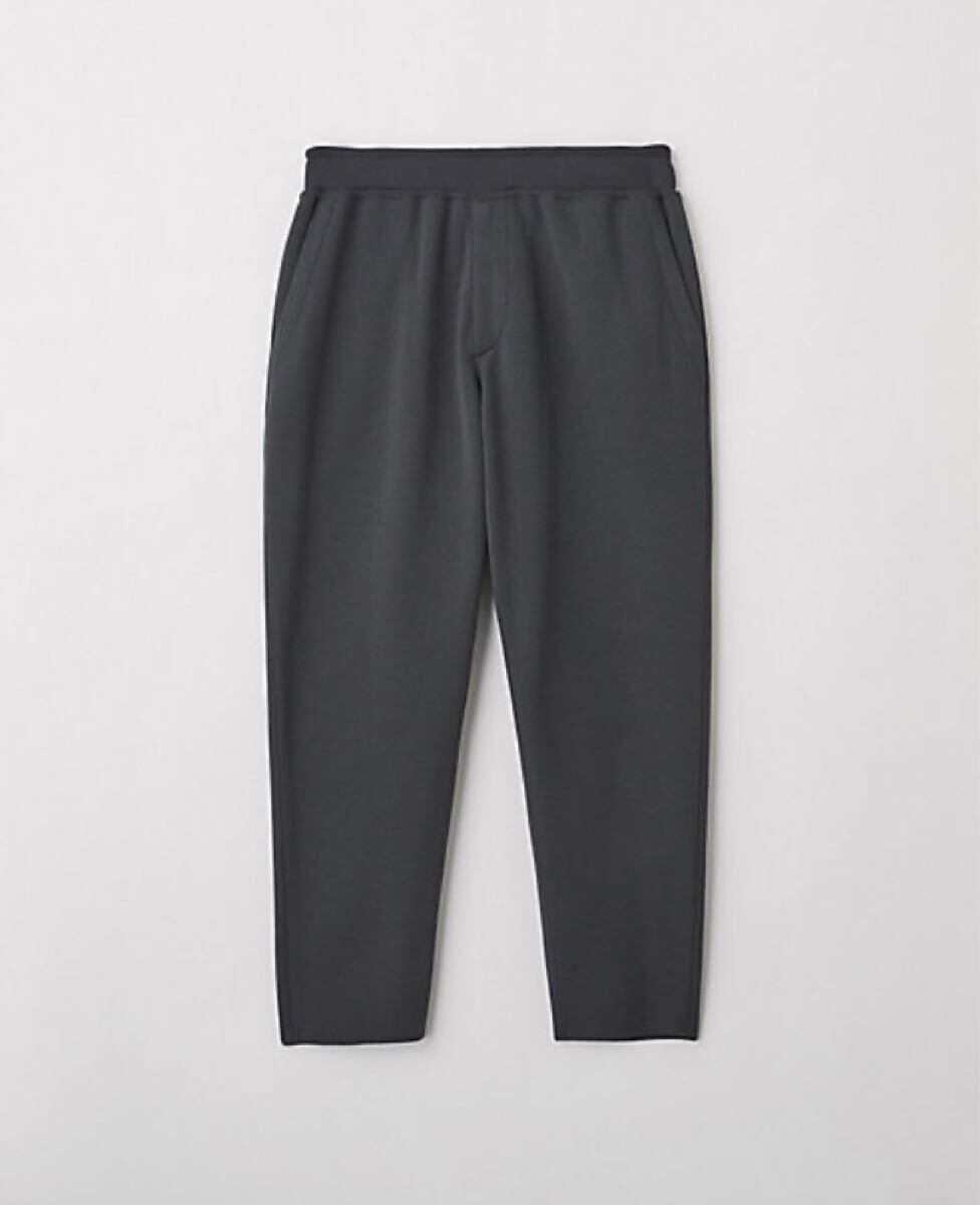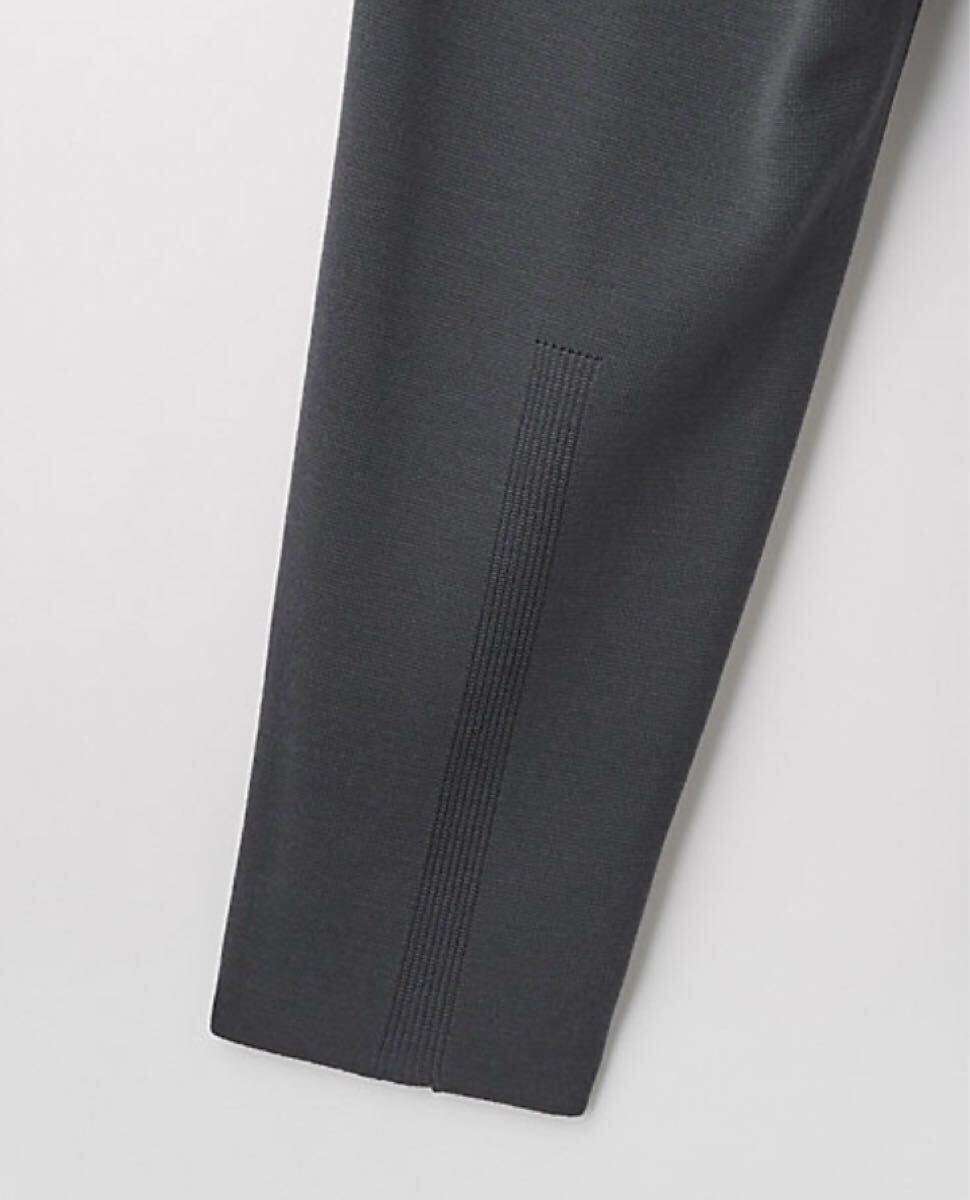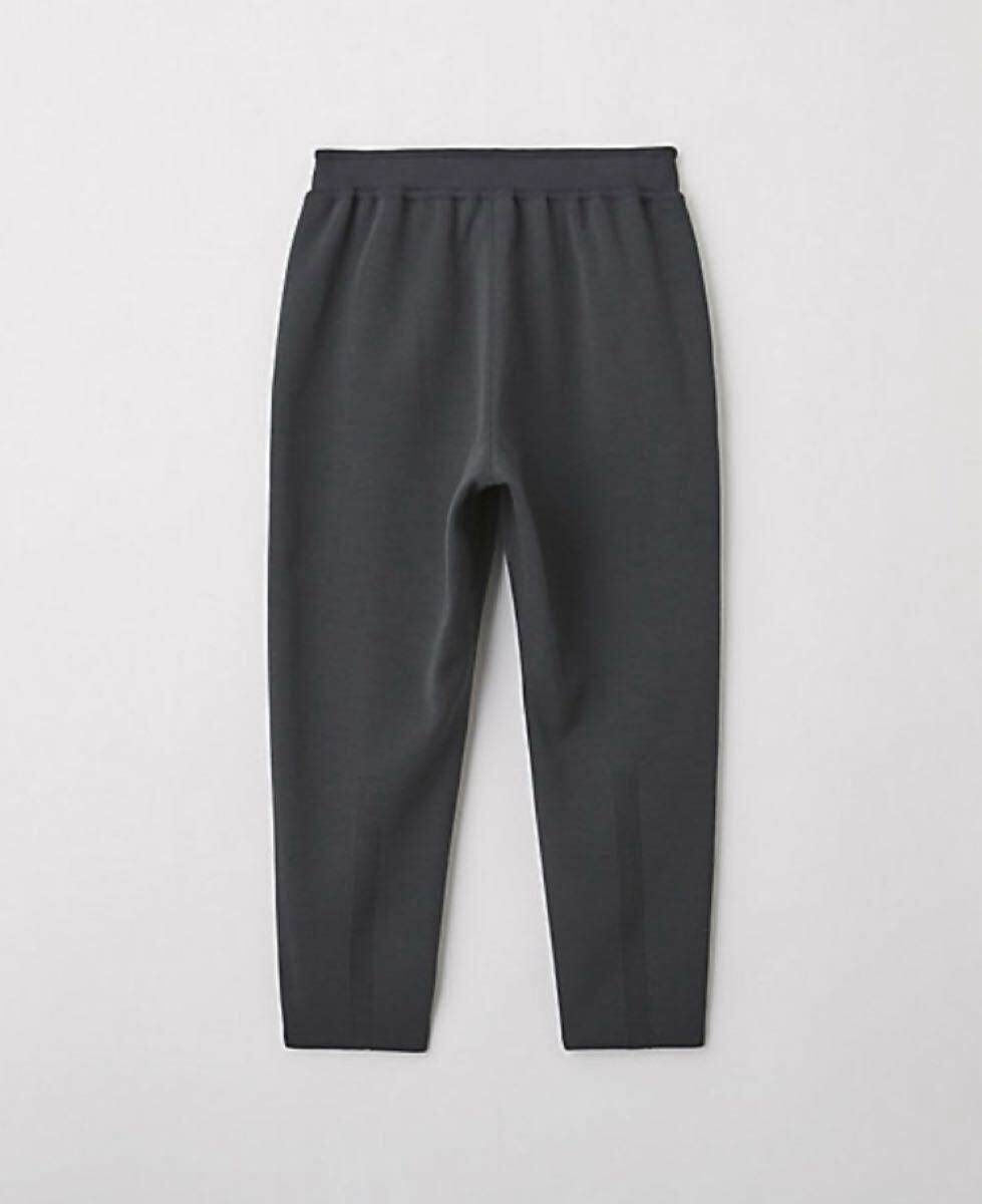 ディティールや切り替えストレッチを最小化したミニマムなデザインで日常から楽に着用できるようウエストはゴム仕様で裾口はニットのストレッチ性を活かしタイトフィットになっています
