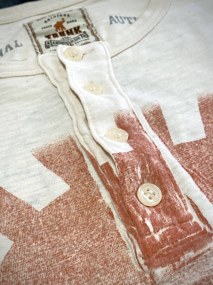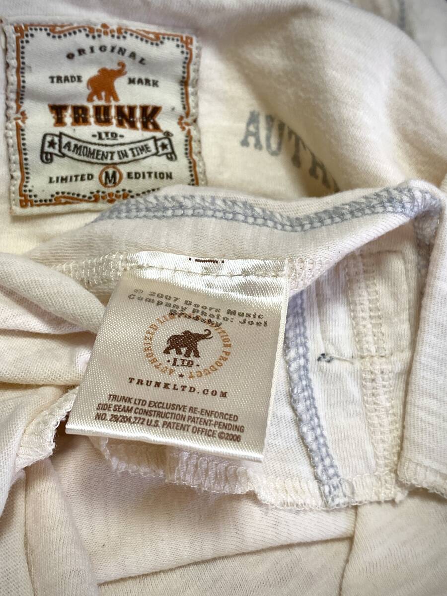 ロック~アートTで有名なLA発ブランド「TRUNK LTD / TRUNK SHOW」によるDOORSの限定ロンTです。色はオフホワイト~ベージュク。表にオレンジ~レッド系統カラーで人物/メンバーとロゴ/doorsのシンプルなプリント。体のラインや動きを際立たせるトランク独特のステッチ仕様。背中にタグ、裾脇にトランクショーの象タグあり。すでに廃番となっているヴィンテージ品です。軽度の解れ伸びなど経年ダメージありますがロックの雰囲気濃厚。コットン100%/伸縮力あり。フィット~オーバーサイズまで着こなし幅あります。サイズ表記Mは日本L相当だと思われれます。サイズ:平置き身幅(脇下幅)50cm /身丈(首~裾)64cm程度※素人採寸(写真確認ください)多少の誤差はご容赦ください。