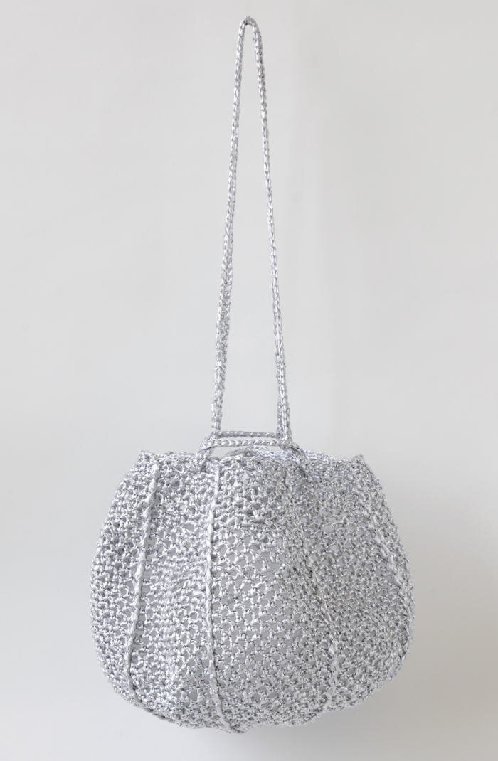 編み物キット 新品 エコアンダリヤで編むネット編みのラウンドバッグ 春夏毛糸 ハマナカ 無料編み図 キラキラ 毛糸で作る小物 夏バッグ