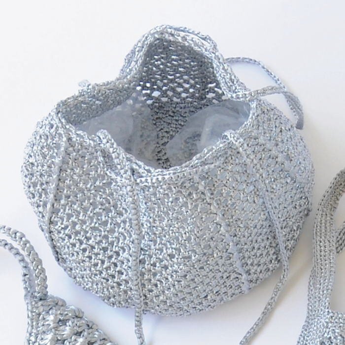 エコアンダリヤで編むネット編みのラウンドバッグのニットキット(編みものキット)