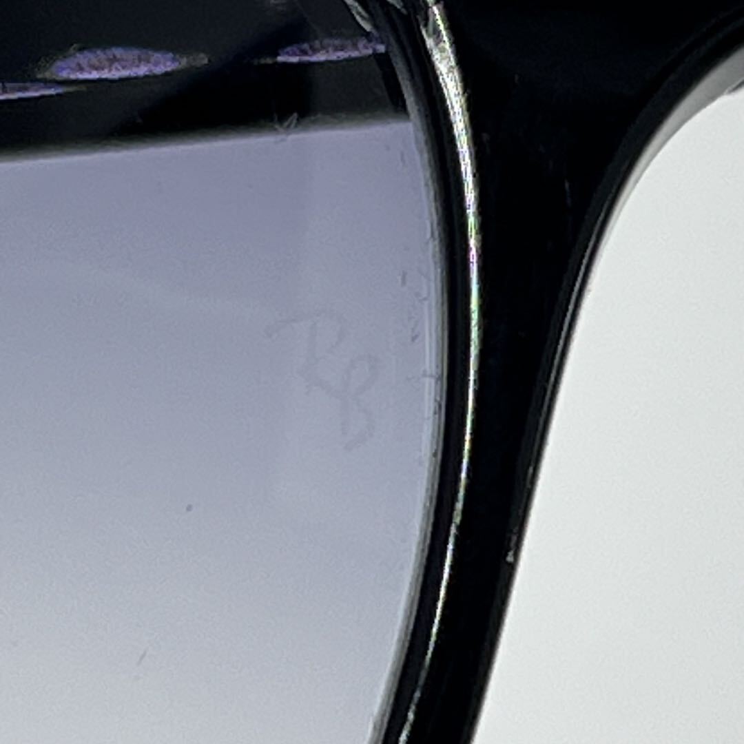 光の当たり方次第で浮かび上がるモヤっとした跡がテンプル(耳掛け)に見られます。