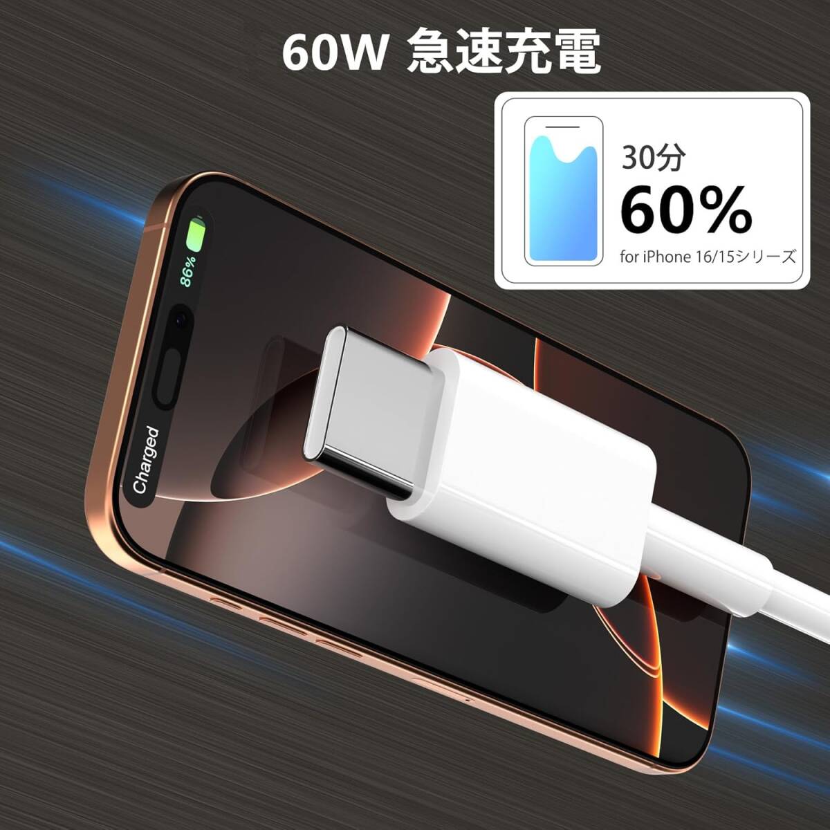 USB Type C ケーブル iPhone 16 15 ケーブル 60W PD対応 急速充電 USB C-C 1M 2本セット 超高耐久 断線防止 高速データ同期 iPhone 16 / 15 / Xperia/Galaxy/LG/iPad Pro/MacBook その他 Android 等 USB-C機器対応