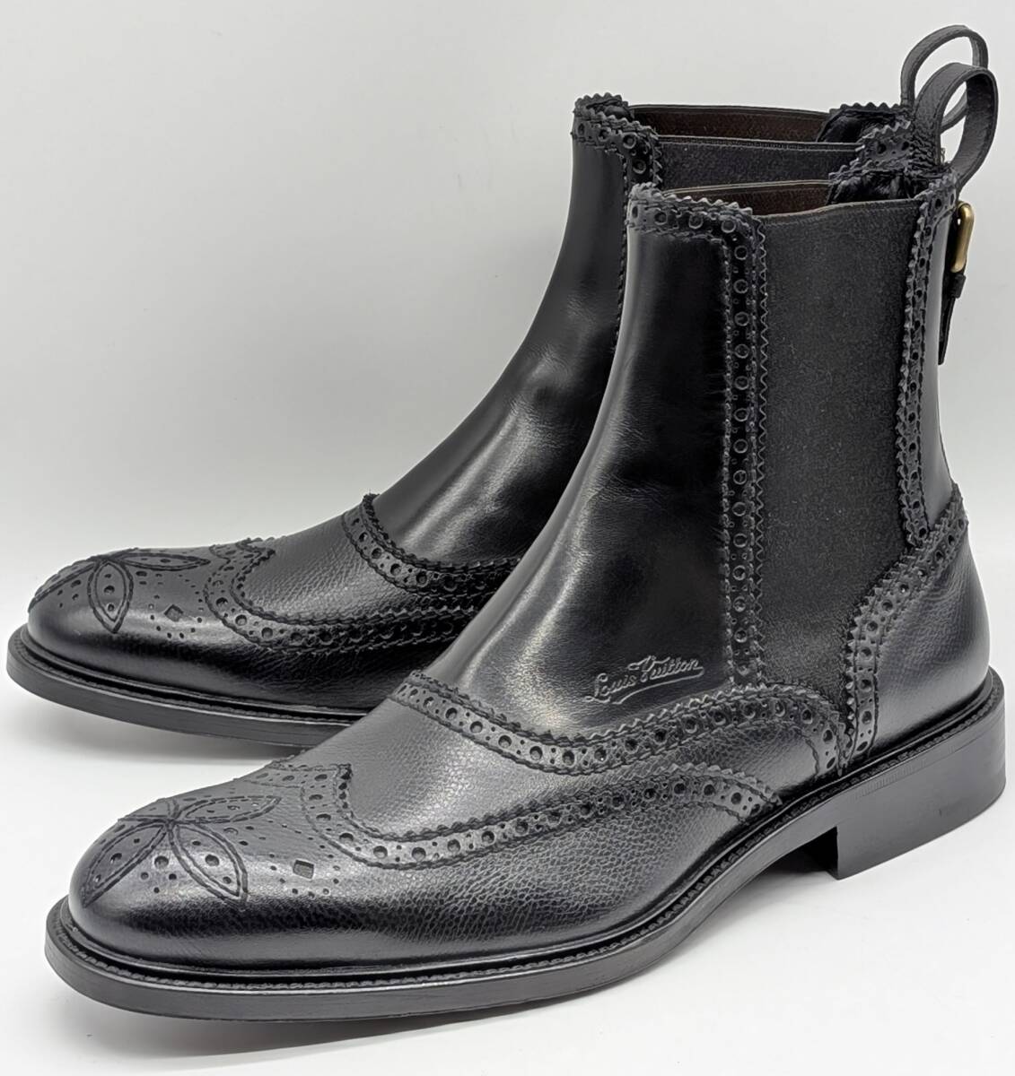 【極美】ルイヴィトン サイドゴアブーツ サイズ6.5【送料無料】Louis Vuitton チェルシーブーツ ウイングチップ フルブローグ サイドエラ