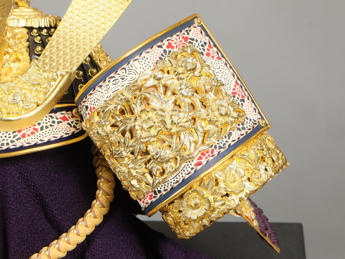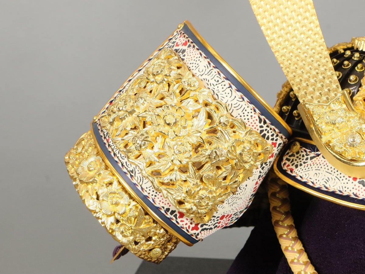品名】 五月兜 甲冑師 武人 作 金箔押小札 正絹糸威 寄せ鉢造 瑪瑙玉持 箔押木彫竜 兜飾り 鎧飾り 端午の節句 五月人形 武者人形 【状態】 経年による多少のキズやヨゴレ、イタミ、クスミがございます。 時代や産地、作者の記載がある商品に関しては当店での判断によるものですので、保証はいたしかねます。あくまで参考程度とお考えいた だき、画像による判断をお願い致します。 上記を含む商品の状態や詳細(材質等)を写真にてご確認いただき、納得された上での入札をお待ちしております。 【大きさ】 飾ったサイズ 幅:約48.5cm 奥行:約37cm 高さ:約70cm (採寸につきましては多少の誤差があるかと思いますので、予めご了承ください。) |