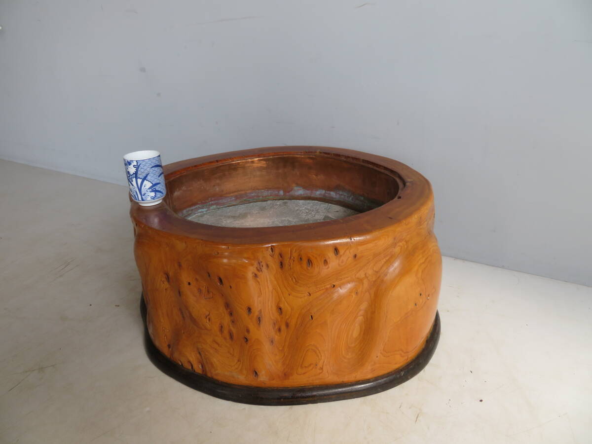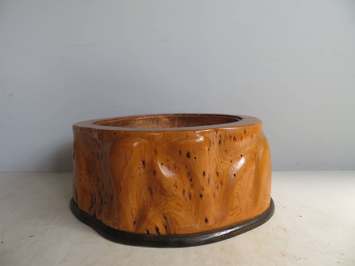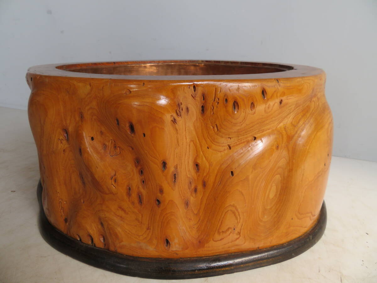 綺麗で状態も良好ですが天然杢の火鉢になりますので乾燥による細かいヒビや多少の汚れあります。