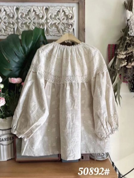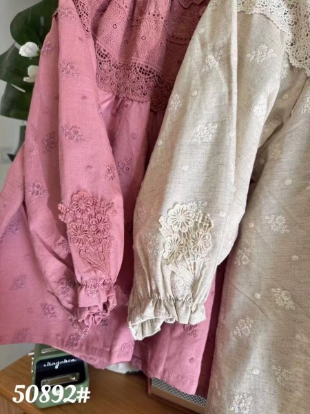c yq チュニック ワイシャツ トップス ふんわり麻綿混 ゆったリ フリーサイズ ナチュラル 通気性手触り抜群 レース&刺柄 ピンク