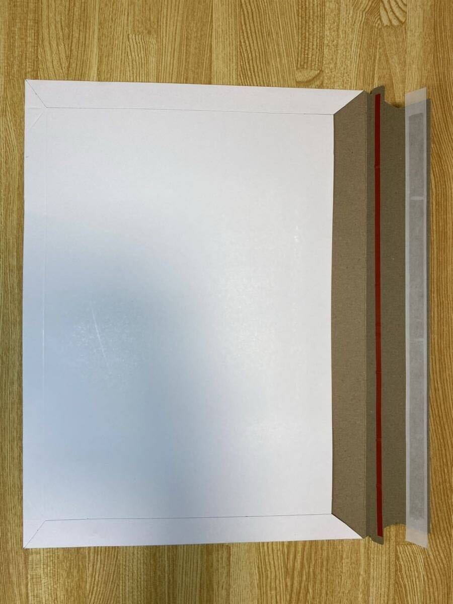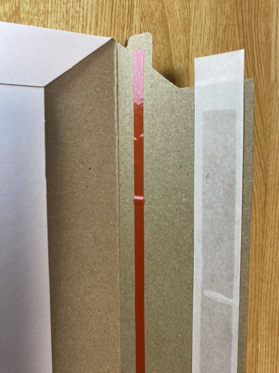 封筒型ケースのため、組み立てする必要がありません。フタ部分に両面テープが付いていますので、効率よく梱包作業を行えます。