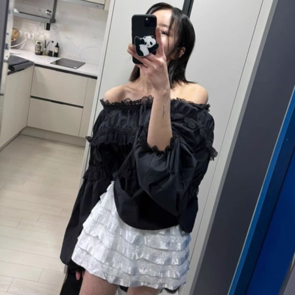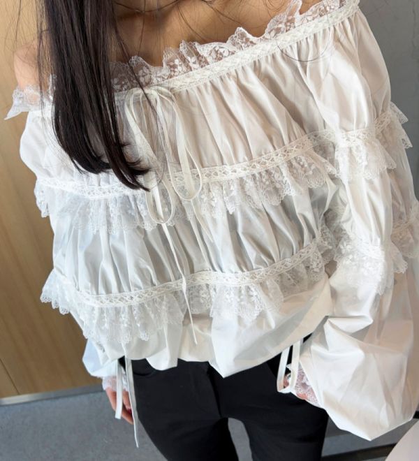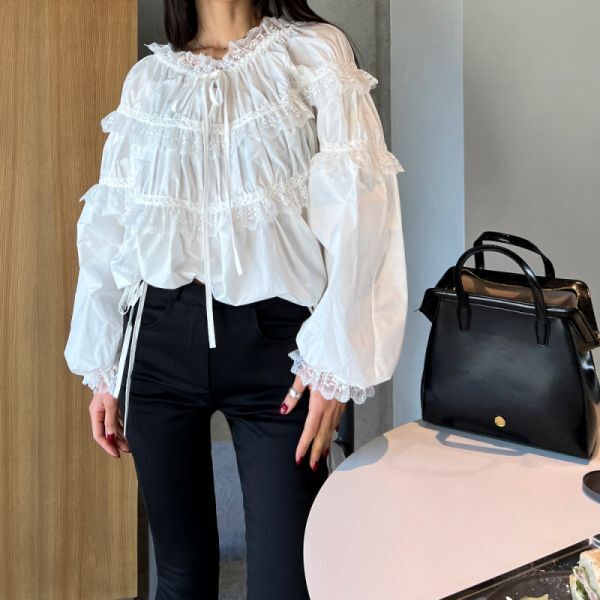 ★★★レディース トップス ブラウス パフスリーブ シフォン フリル FX98