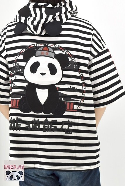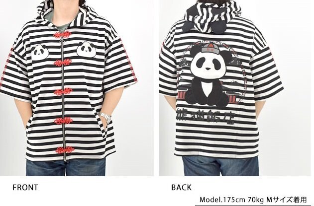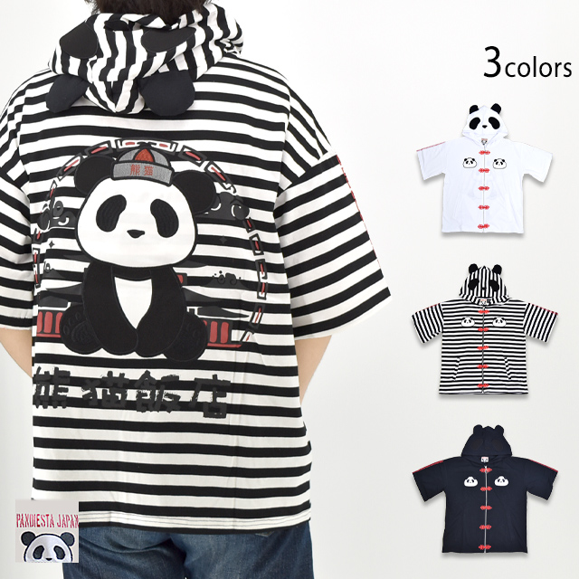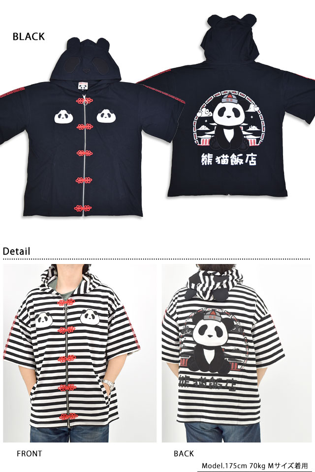 和柄ブランド【錦】の姉妹ブランドとして誕生した、お茶目なパンダをモチーフとした【PANDIESTA JAPAN】より「なりきり中華屋パンダさんBIGパーカー(585103)」のご紹介です。 今や、錦の定番モチーフとなった「錦PANDA」!! フロントには中華まんになってしまったパンダをスカジャン風に配置。 袖にはラーメンどんぶりの様な中華ラインを、背中にはチャイナキャップを被ったパンディエスタを刺繍とプリントでデザインしました。 フロントのチャイナボタンが可愛らしい中華風の半袖パーカーです。 パーカーフードにはパンダの顔をデザインした『なりきり仕様』を採用し、フルジップパーカーのため、幅広いシーズンでスタイリングしていただけます。 ビッグシルエットながらも、その可愛らしいデザインからレディースサイズの展開を望まれる声が多く、今シーズンから一部アイテムで『Sサイズ』をラインアップしています。 | |||||||||||||||||||||||||