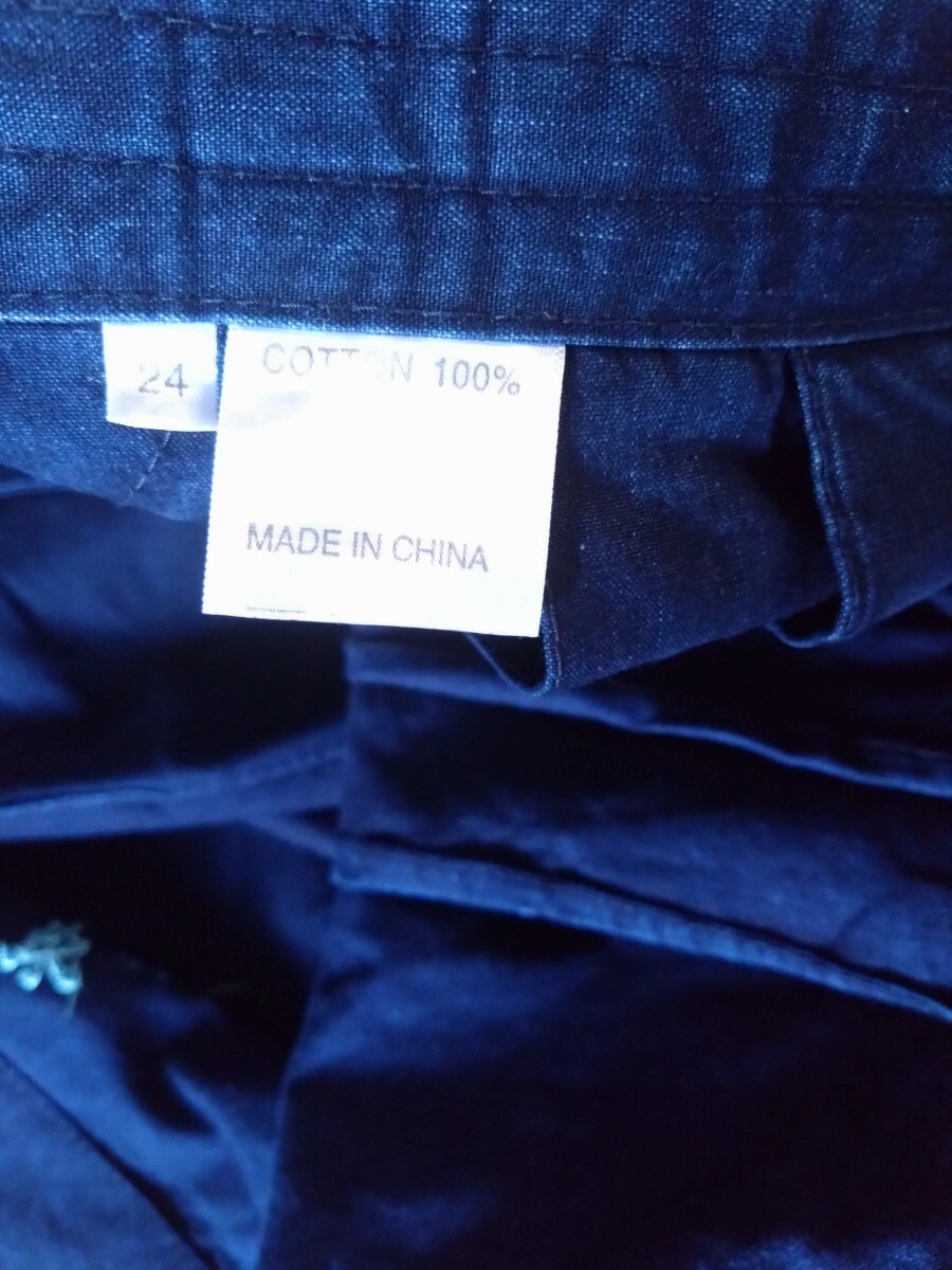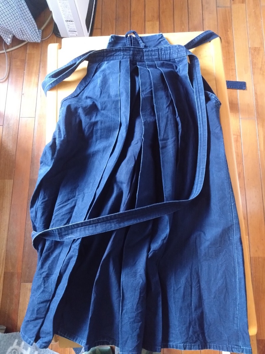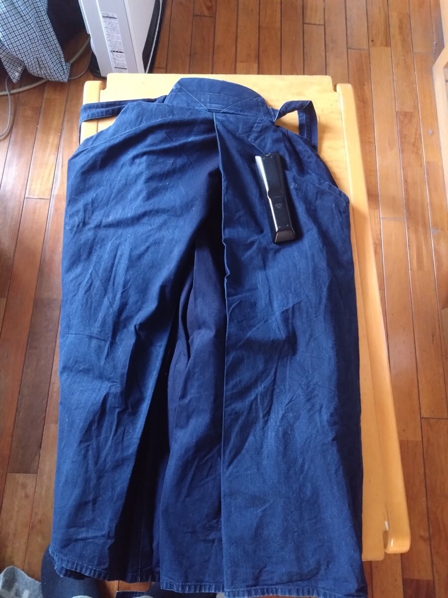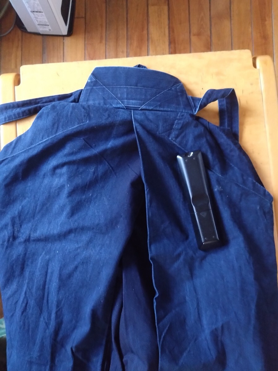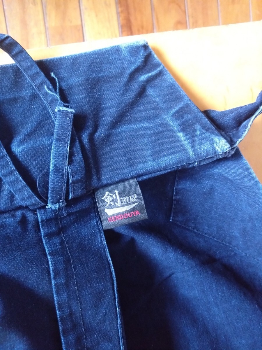人気の剣道ショップ「剣道屋」の袴です。綿100%です。サイズは24号です。多少色落ちしています。画像 でリモコンを置いてる部分に名前が刺繍されています。汚れや破れはありませんが、いい感じで色落ちしてます。