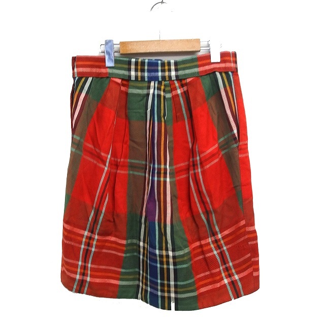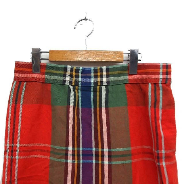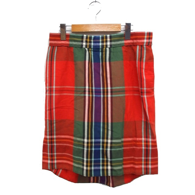 ドゥロワー Drawer チェック タイトスカート ひざ丈 綿麻40 オレンジ /FT47 レディース