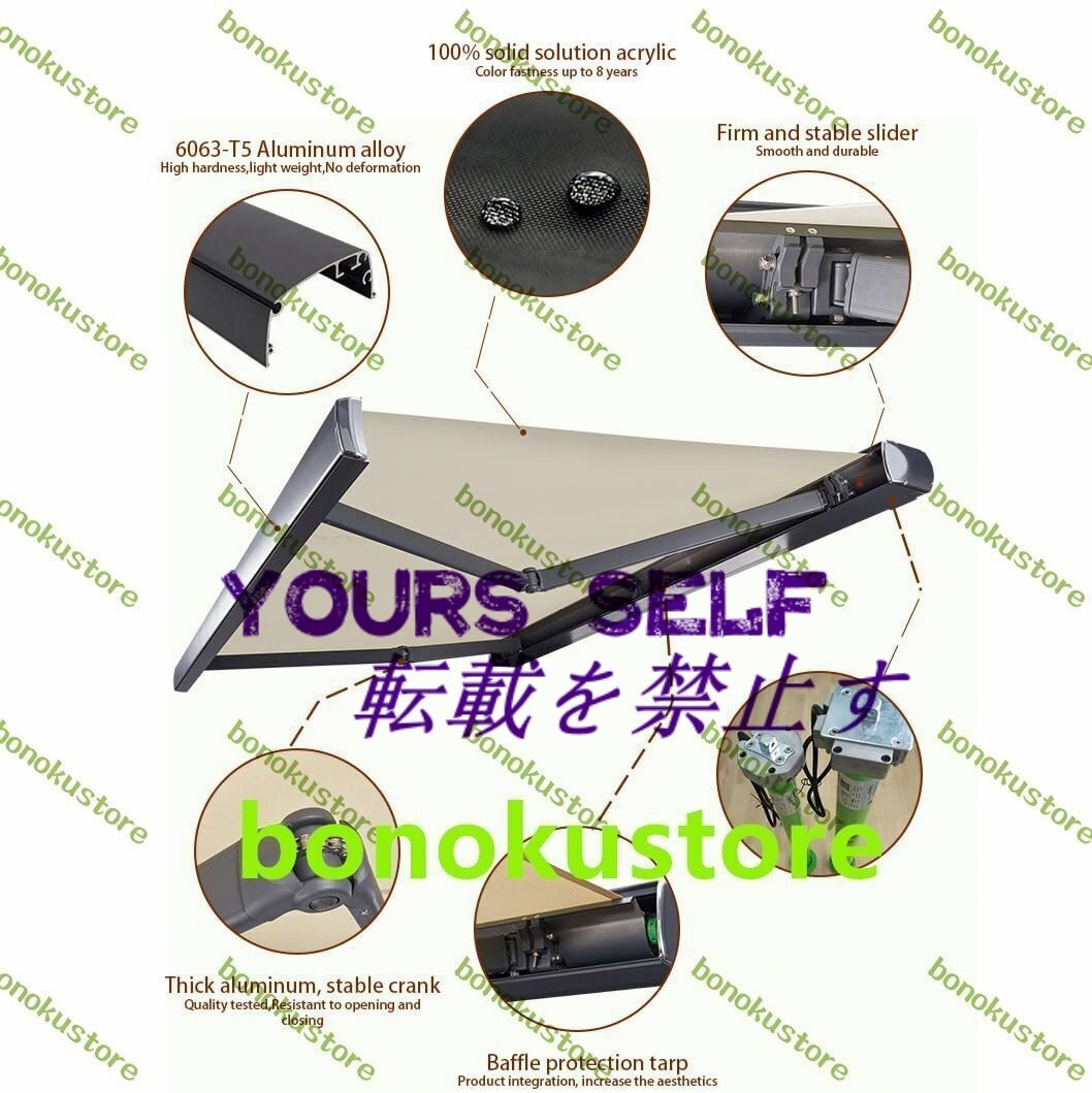 商品説明 商品の説明 そんなあなたにオススメなのが電動格納式オーニングです! 大雨や灼熱の日差しにも耐える優れた性能を発揮します。 高級素材を融合した優れたデザインで、耐久性と耐摩耗性に優れています。アルミニウムのブラケットはこの天蓋を強力に支えることができ