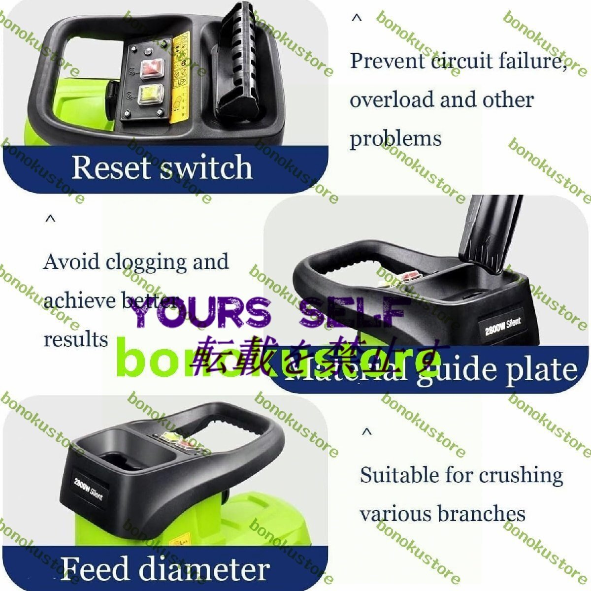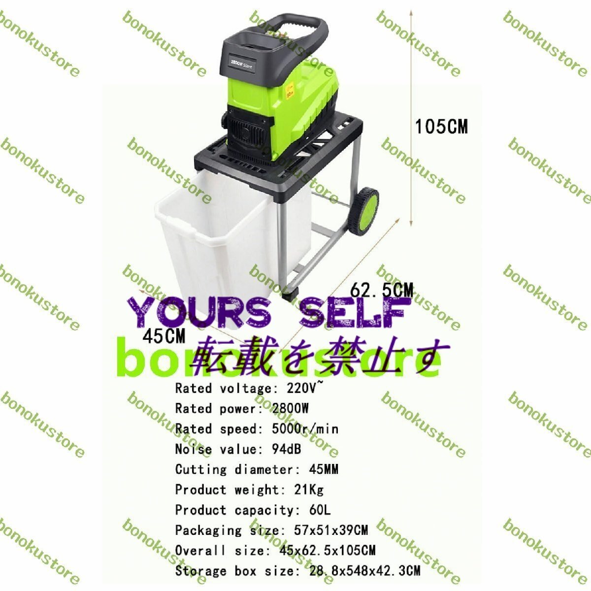 商品説明 効率的:ガーデングラインダーには強力な2800W銅線モーターが装備されており、ステンレス鋼のマンガン鋼ブレードと組み合わせて、グラインダーは高い切断効率を提供でき、電動ナイフグラインダーは直径1.77インチまでの枝や低木を簡単に粉砕できます。 コレクター: