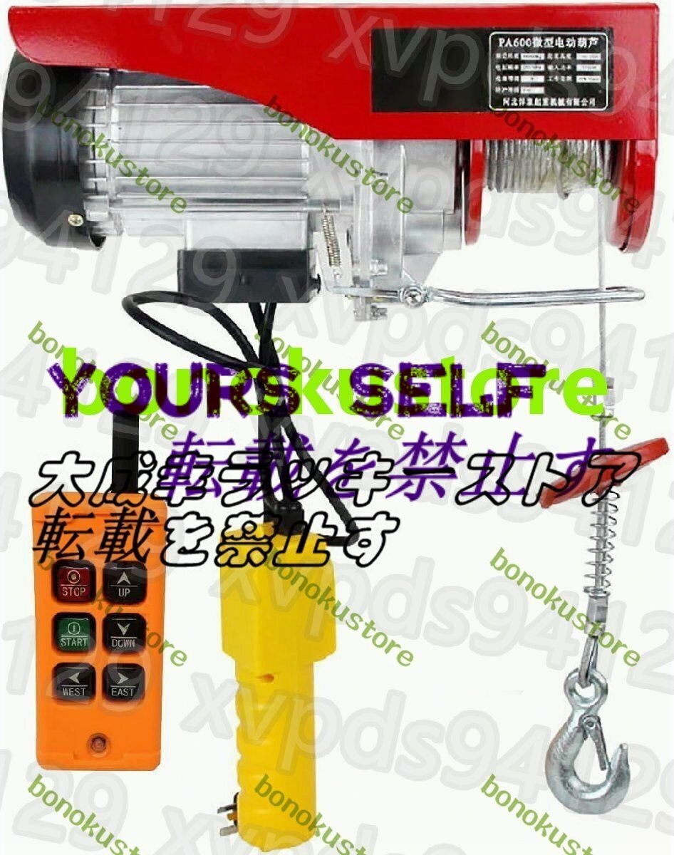 商品説明 商品説明 【商品詳細】★状態:新品未使用【優れた性能】このクレーンホイストは驚くべき性能基準を持っています。 最大積載量は500/1000kg、最大出力は1600ワットで、最大12/6mまで物体を持ち上げることができ、重量物を毎分8/4m/minの速度で素早く効率的に持ち上