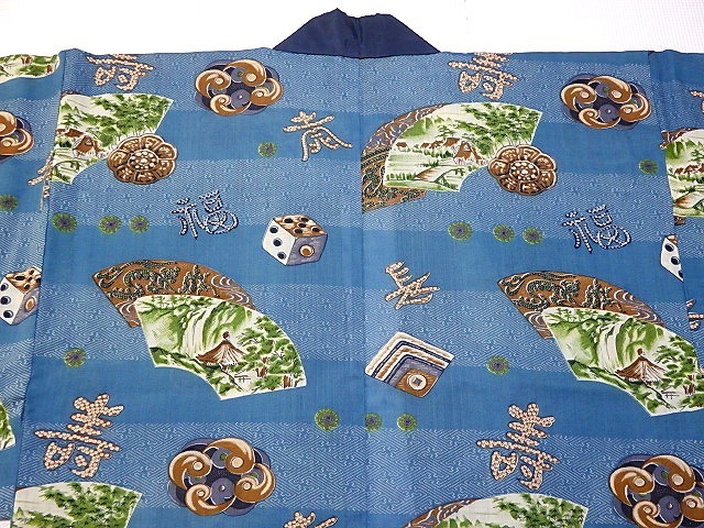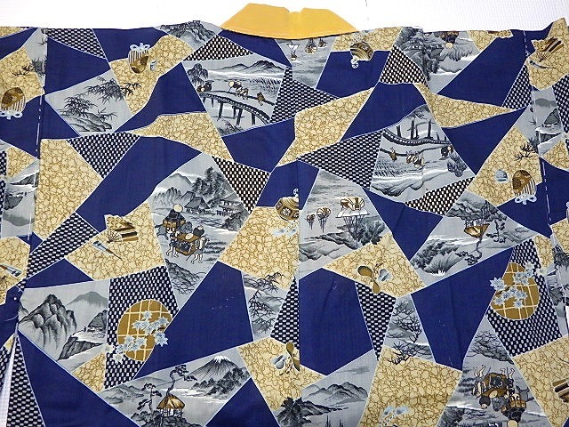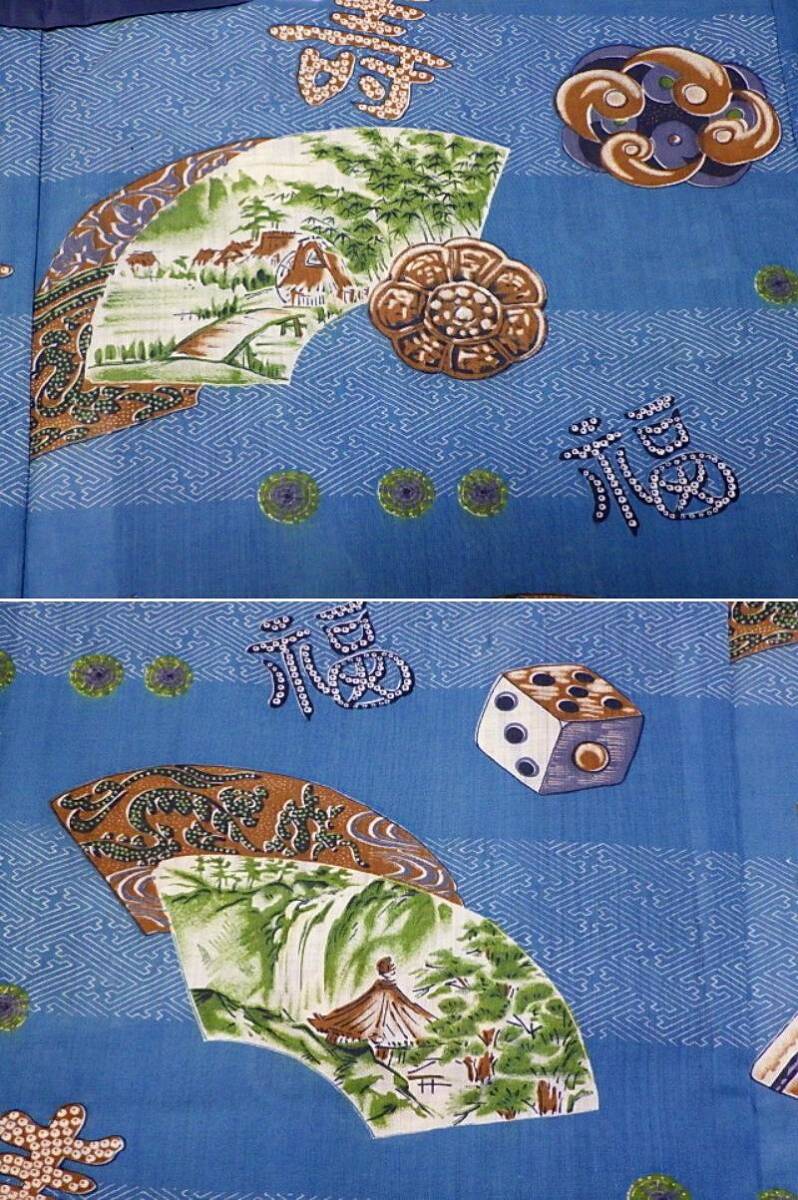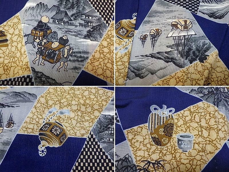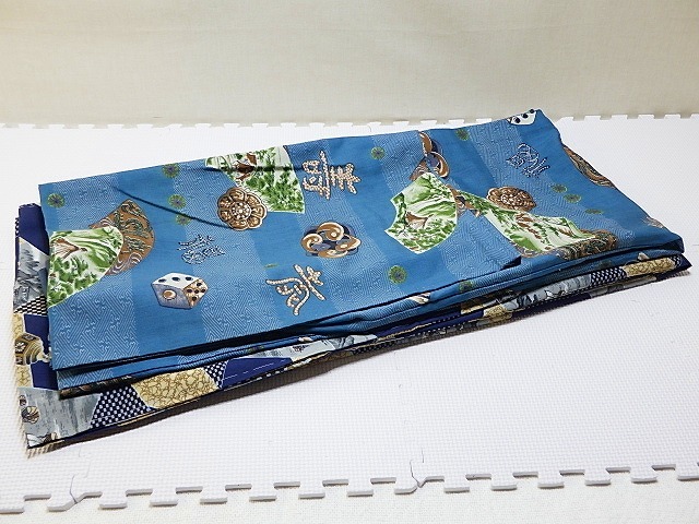 ★ 男着物 モスリン 長襦袢 端切れ向き 2着まとめ サイコロ ダイス 人物 風景 茶器 ★ H424 muslin nagajuban | ||||||||||||||||||||
