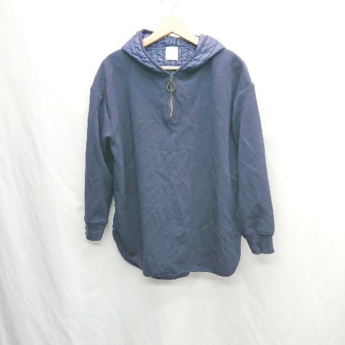 ◇ ⊂ Bab バブ 内側ナイロン 長袖 フードジップパーカー サイズ38 ネイビー系 レディース E