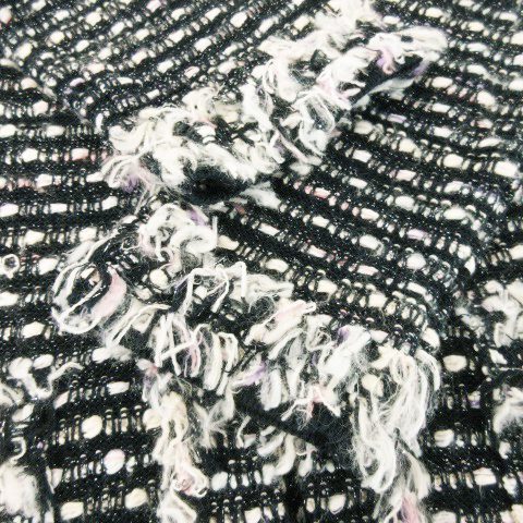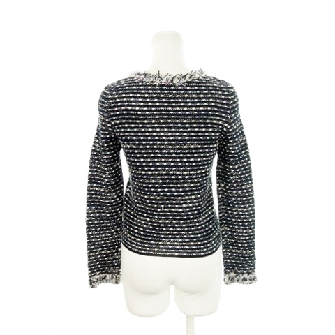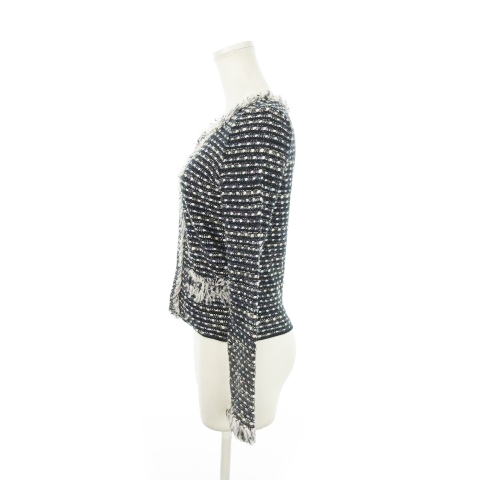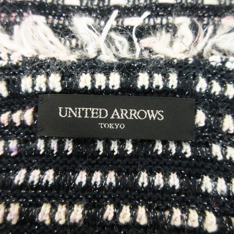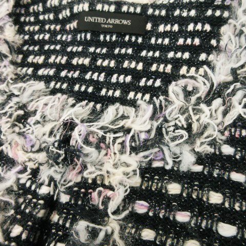 ユナイテッドアローズ UNITED ARROWS ニットツイードジャケット ノーカラー フリンジ ファンシーツイード 紺 ネイビー /AH17