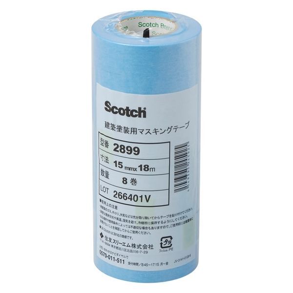 【マスキングテープ】 スリーエム ジャパン 3M マスキングテープ 建築塗装用2899 15mm×18m 1パック(8巻入)×10個