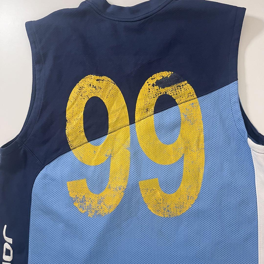 背番号プリントダメージ、フロントプリント色移り、ボディ裏に汚れがございますが古着らしい良い雰囲気の1着