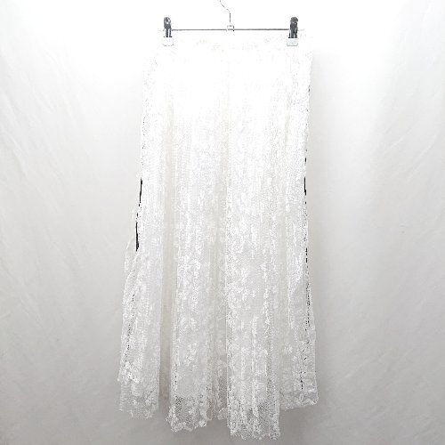 ◇ ⊂ merlot メルロー レース ロング プリーツ スカート サイズ表記なし ホワイト レディース E