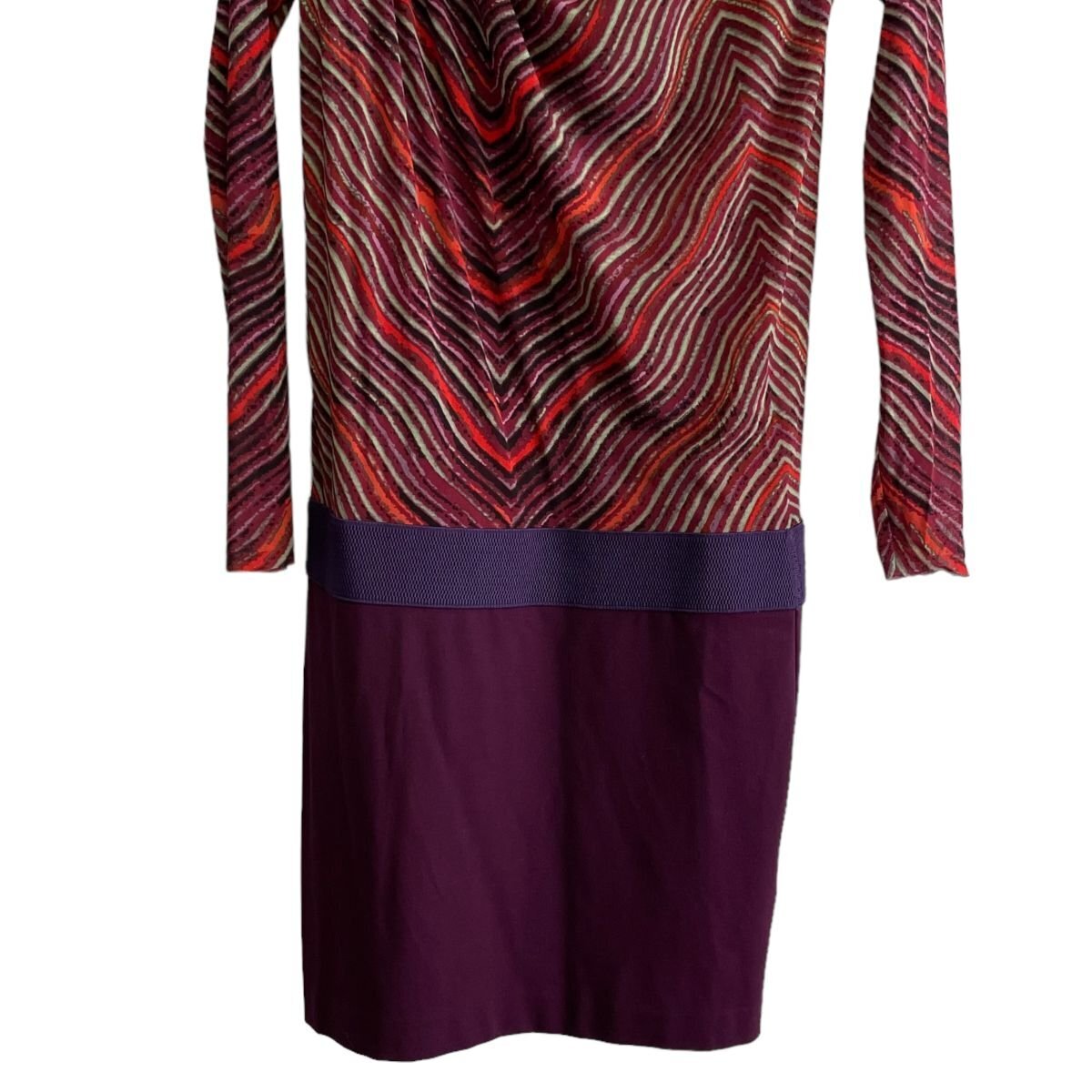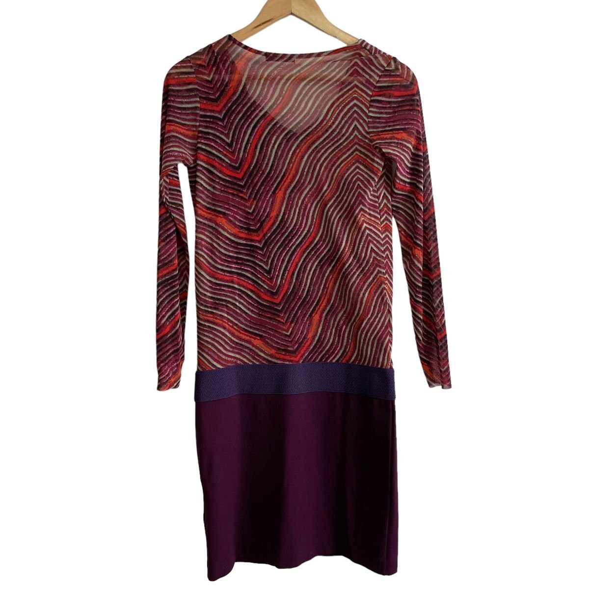 美品 VIVIENNE TAM ヴィヴィアンタム 長袖 シアー パワーネット ひざ丈 ドッキングワンピース 0 パープル系