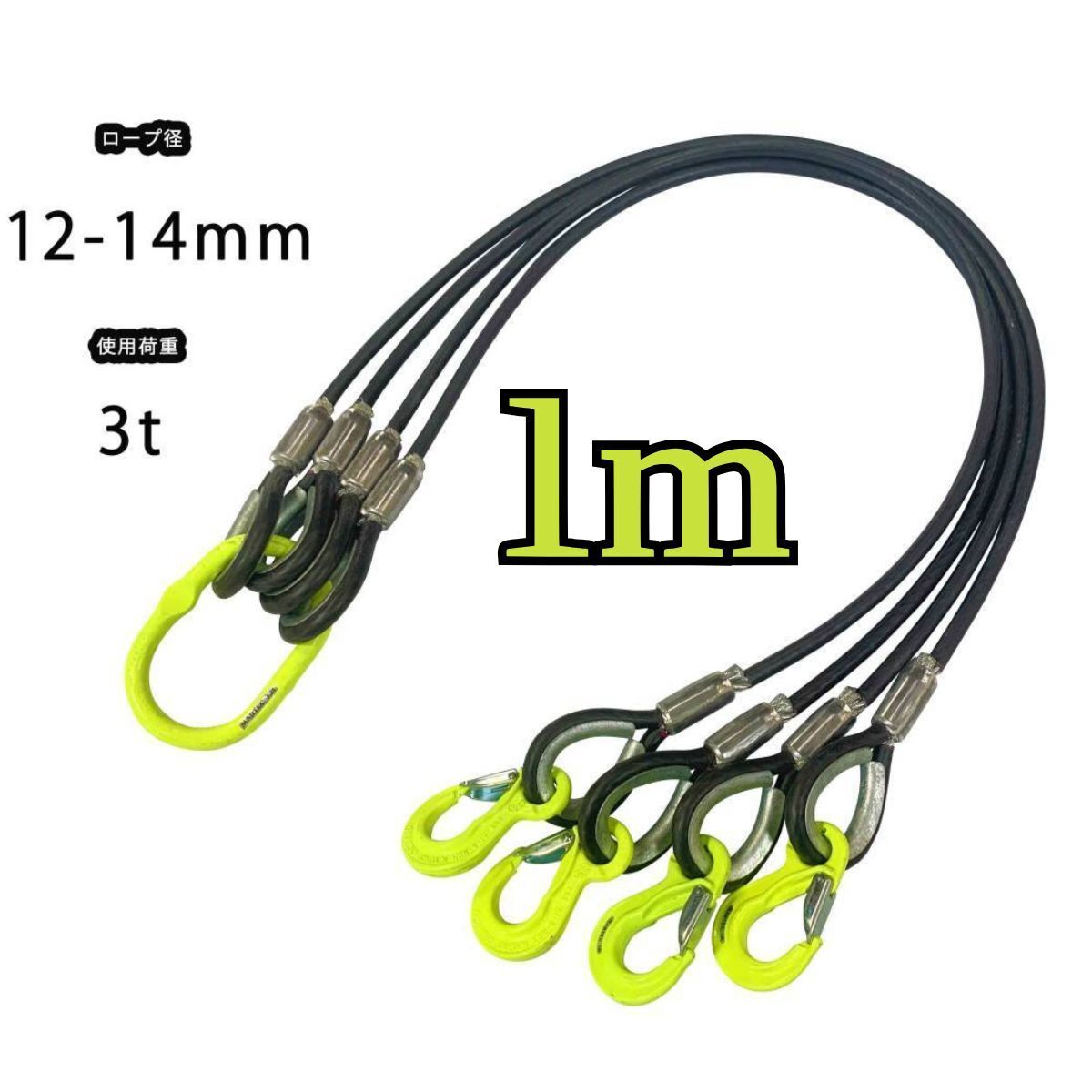◆4点吊 マーテック 被覆(12mm-14mm)×1m 使用荷重3t 玉掛 2本吊 クレーン ワイヤーロープ スリング◆ | ||||