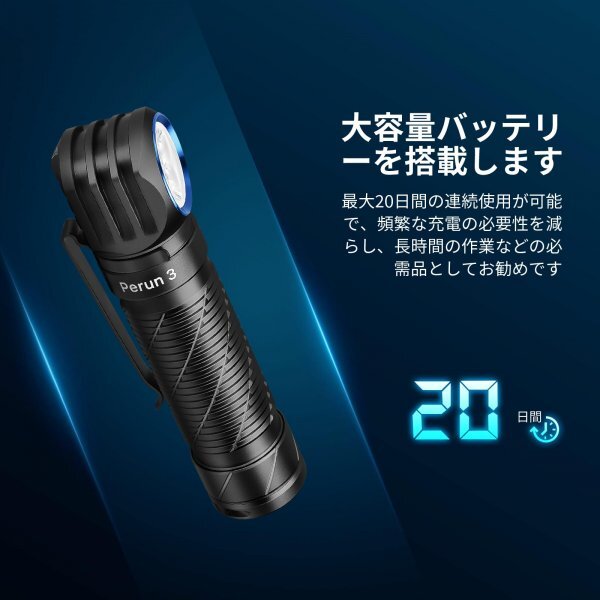 - 高輝度・長航続時間: 最大明るさ3000ルーメン、照射距離約160メートル、最大20日間の連続使用が可能