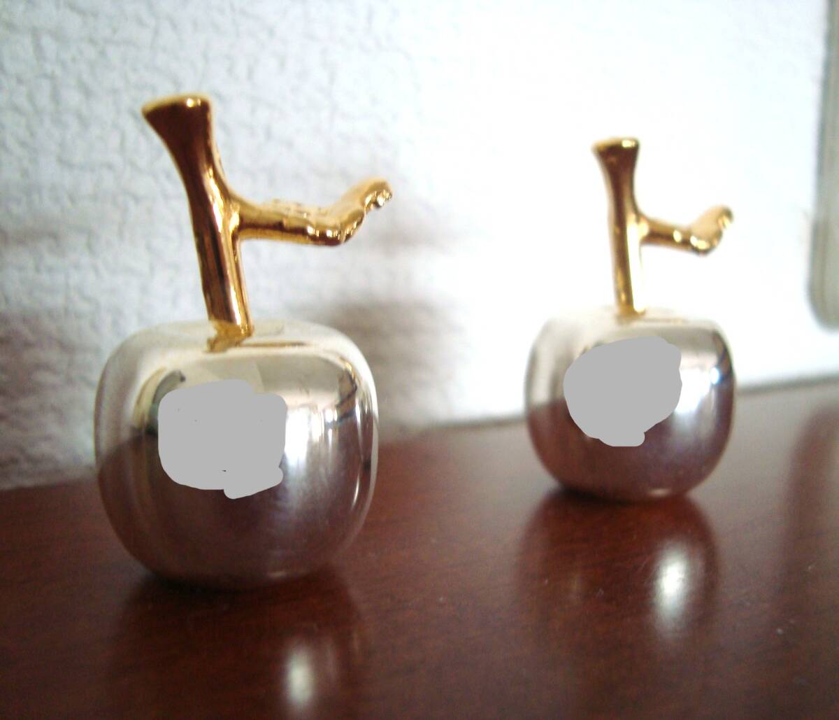 銀メッキ りんご型 メッセージorメニュー立て 2個セット 変色加工を施している(高さ3.5cm)飾ってもよし