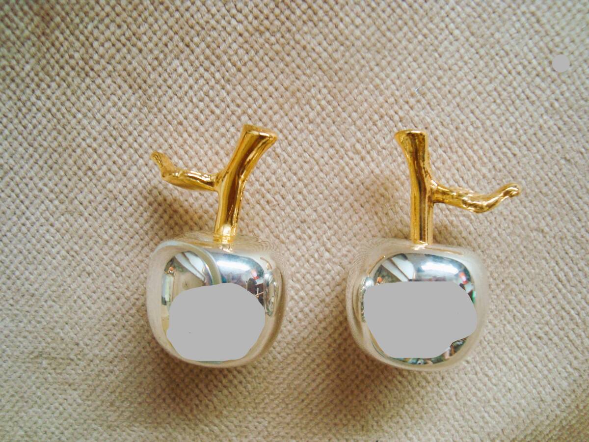 銀メッキ りんご型 メッセージorメニュー立て 2個セット 変色加工を施している(高さ:3.5cm)飾ってもよし