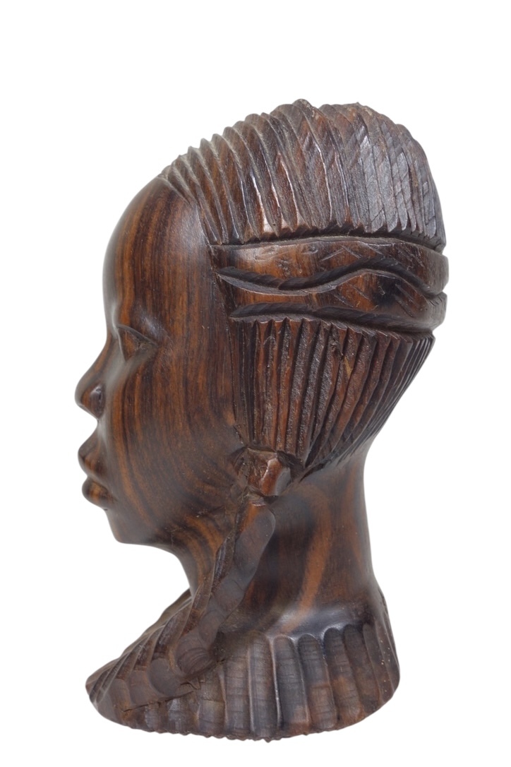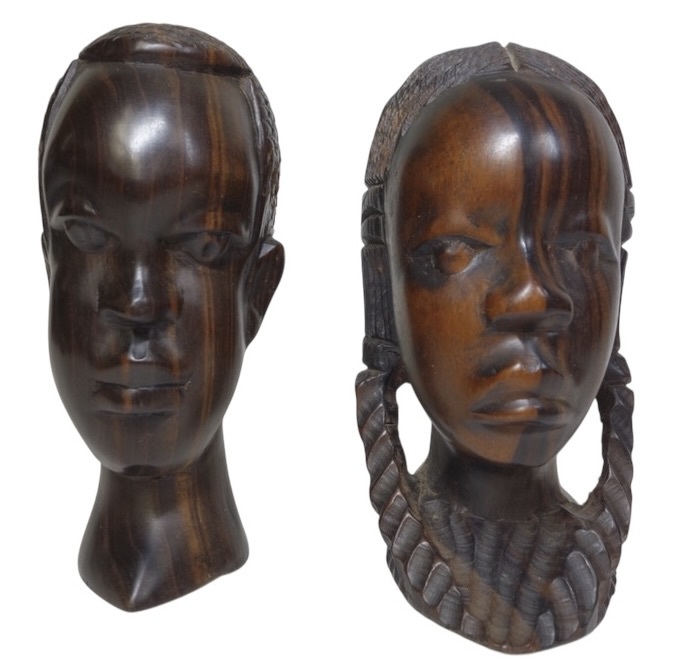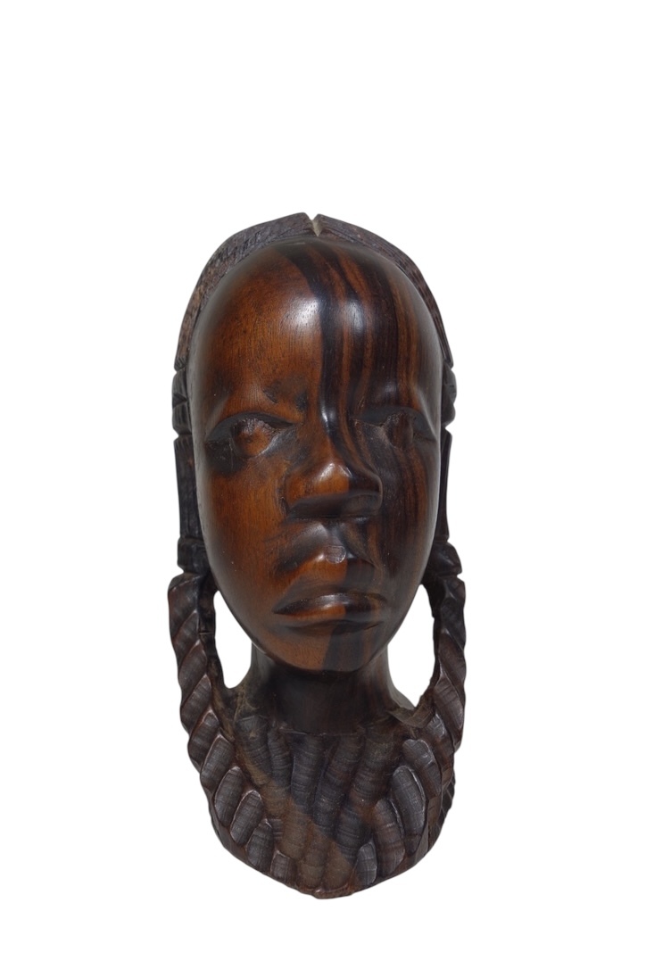 アフリカンアート ビンテージ 木彫 黒檀 手彫り 人頭部彫刻 彫刻 民芸品 1980年代