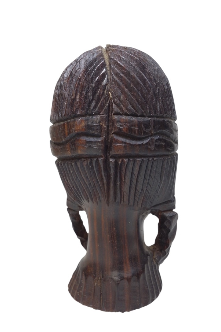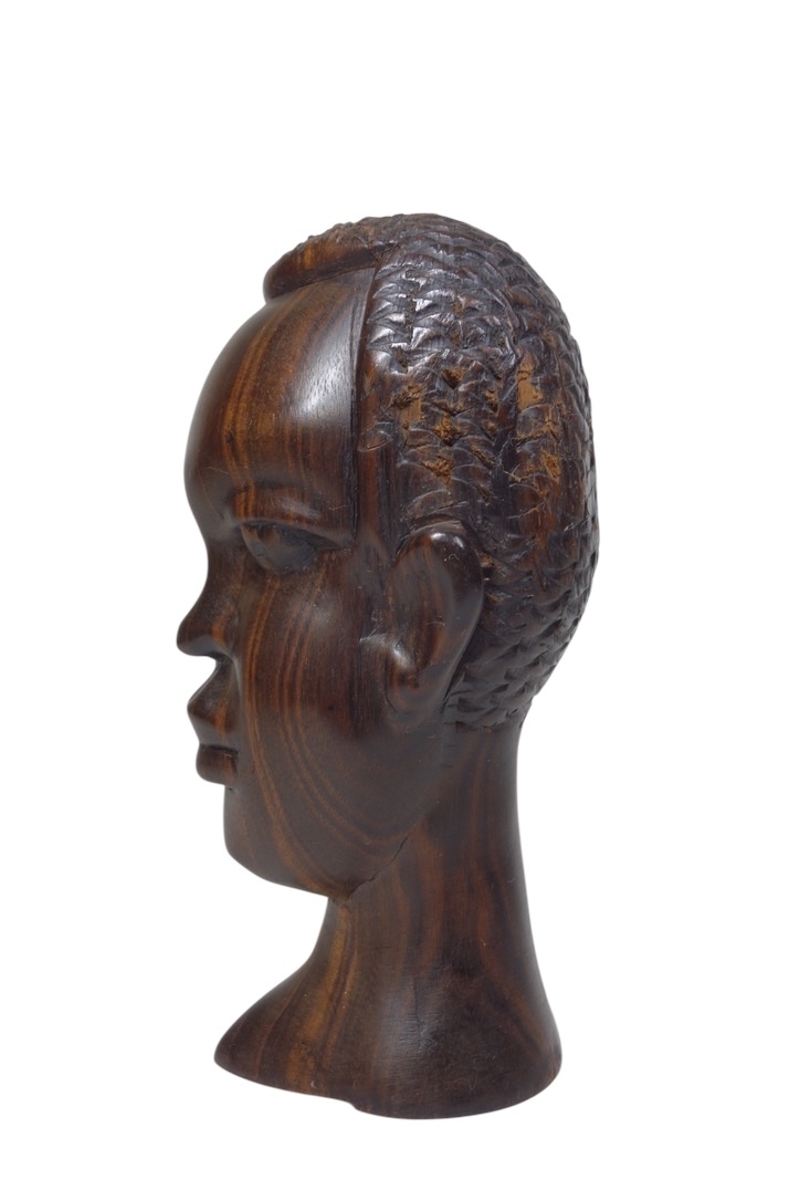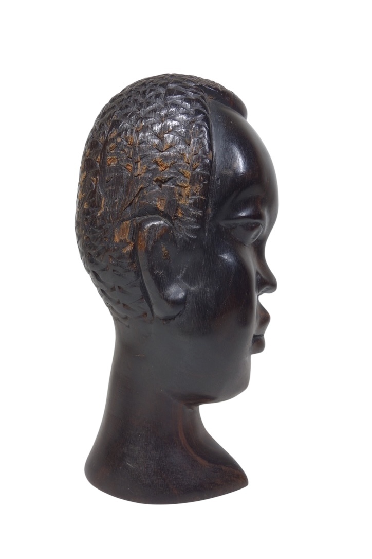 アフリカンアート ビンテージ 木彫 黒檀 手彫り 人頭部彫刻 彫刻 民芸品 1980年代 SHK706