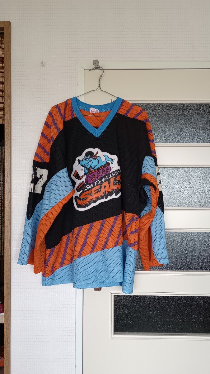 アメリカ古着、ホッケーメッシュジャージユニホーム。劣化したナンバーです。