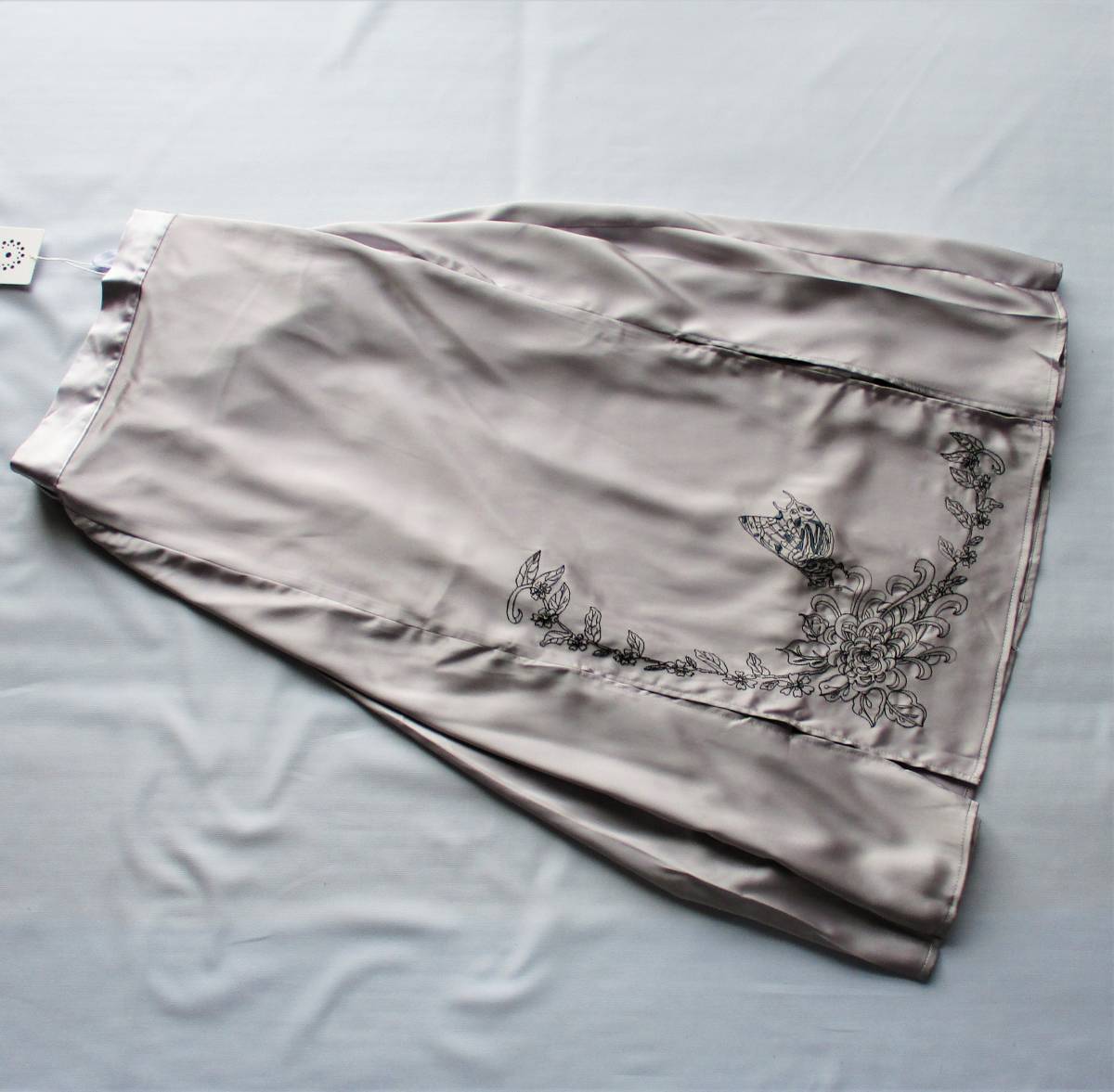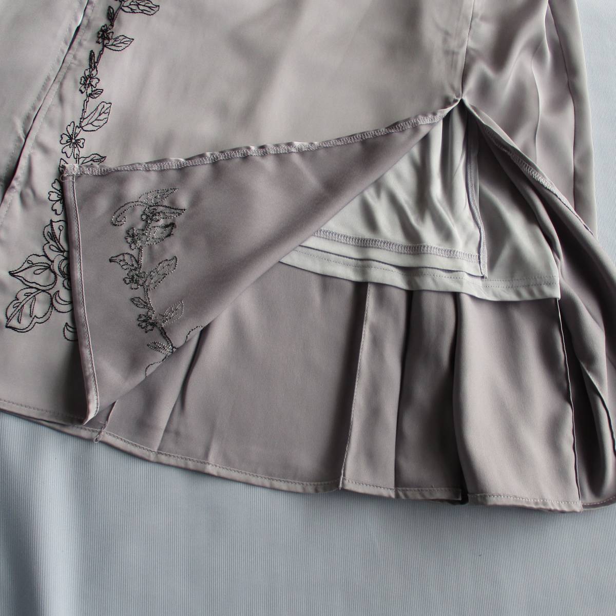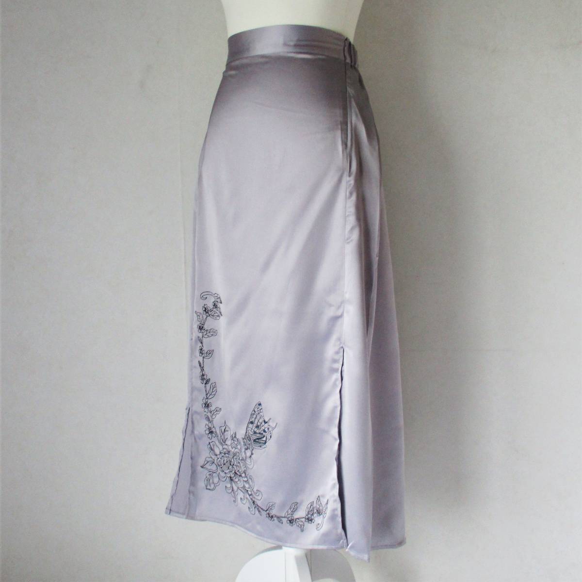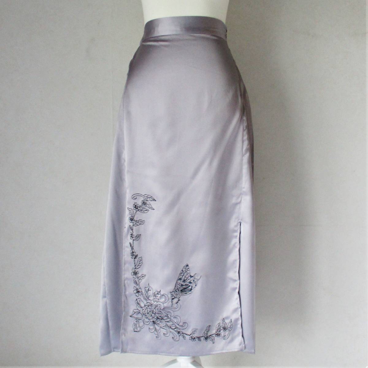 ☆新品☆aimoha アイモハ☆刺繍スリットロングスカート size M ピンクがかったシルバー【圧縮発送】