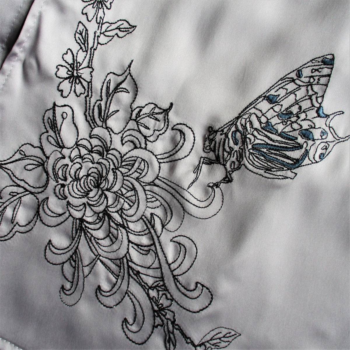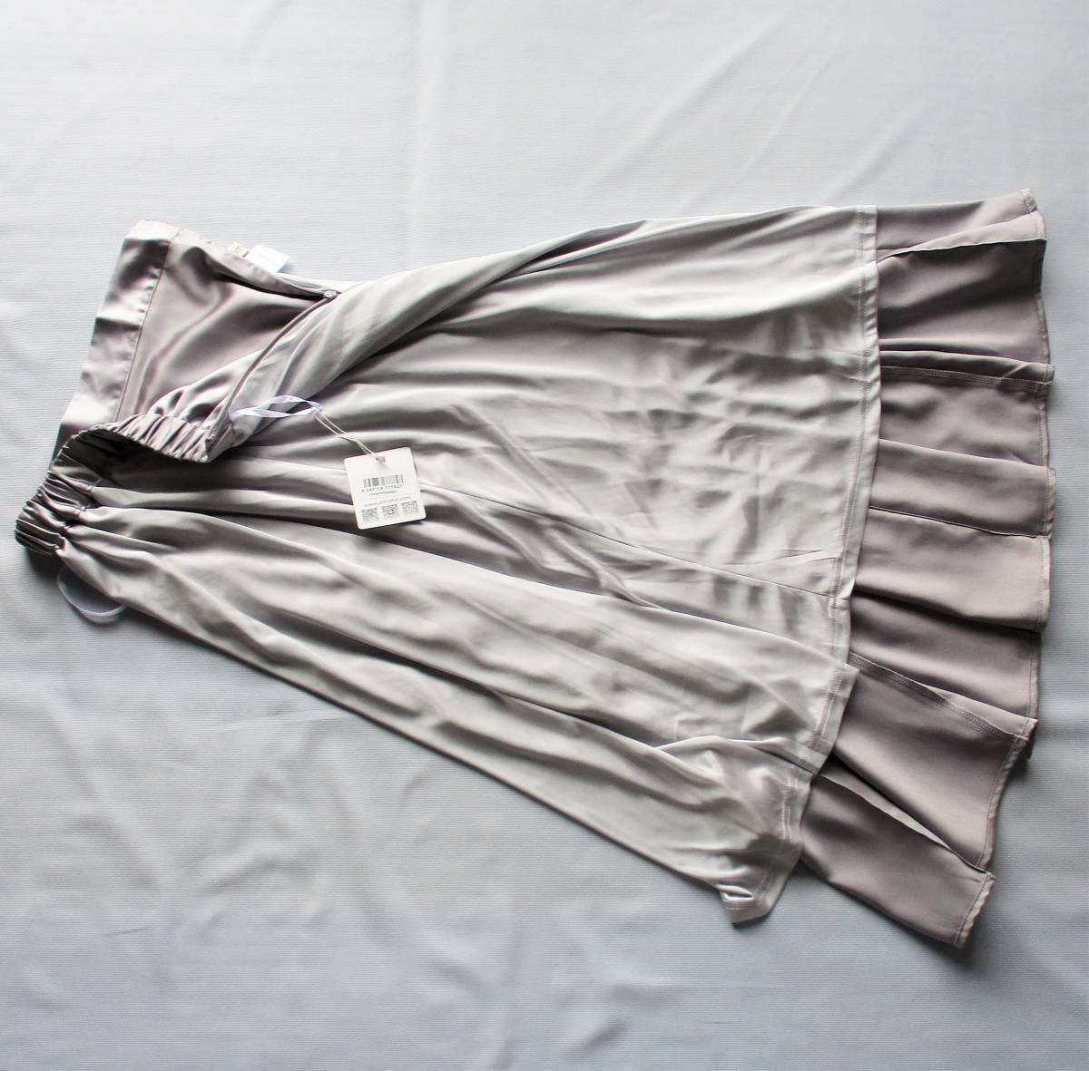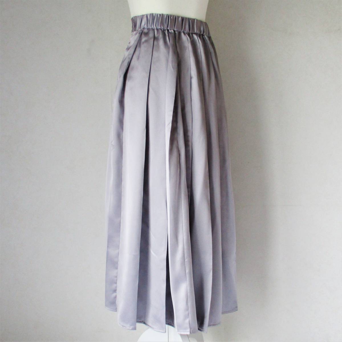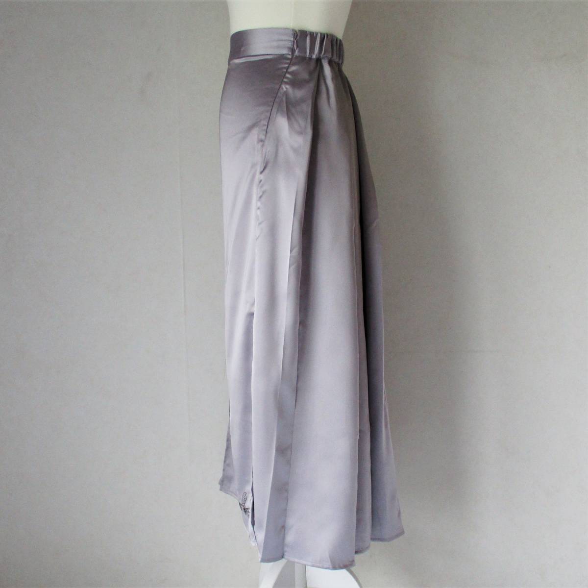 お色はわずかにわずかにピンクがかったシルバー系。サテン特有の生地の光沢感があります。全体的にはくすんだトーンのお色です。