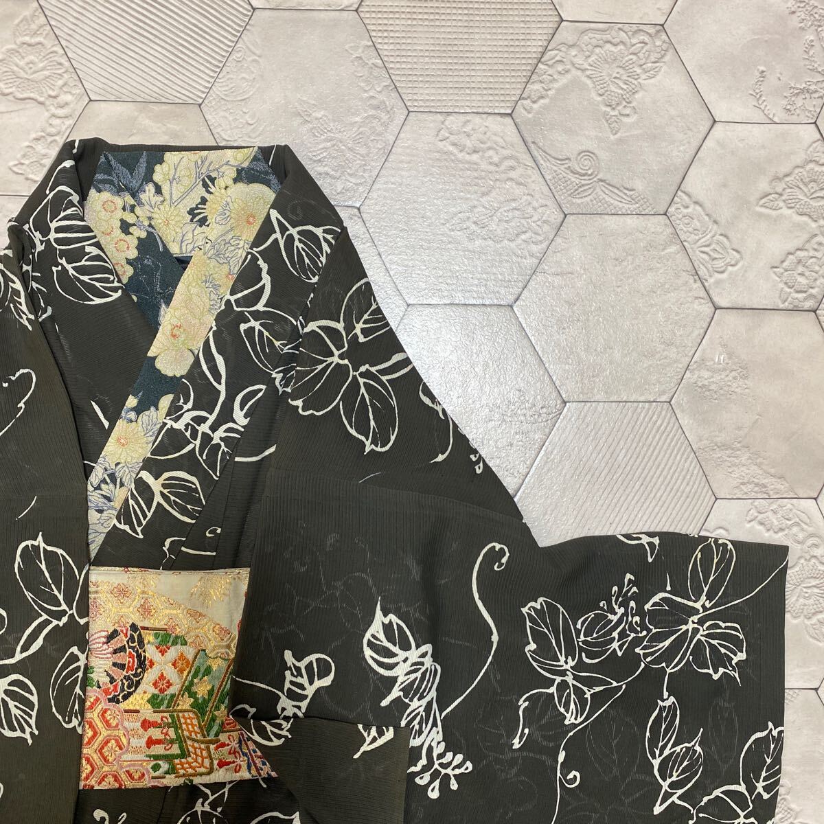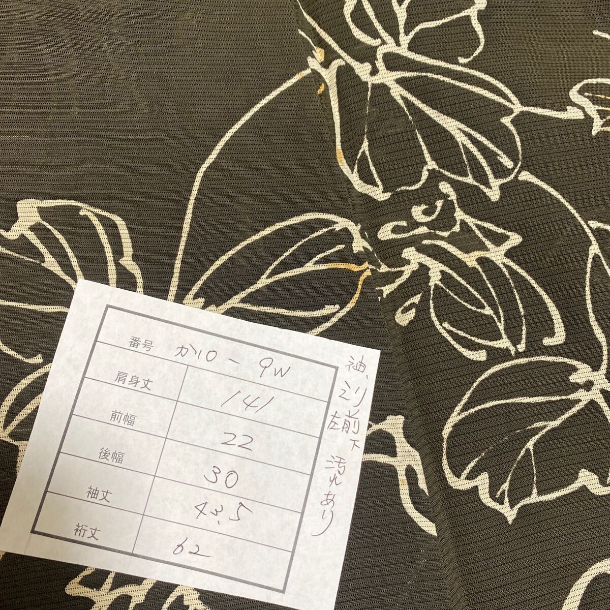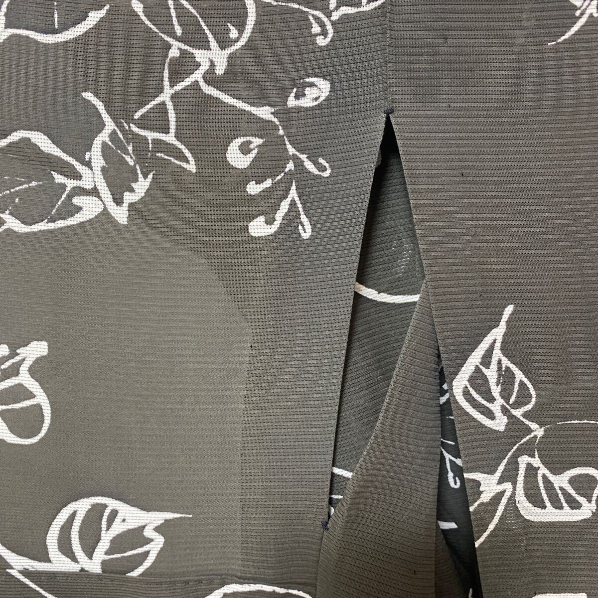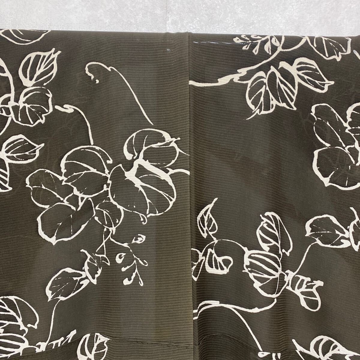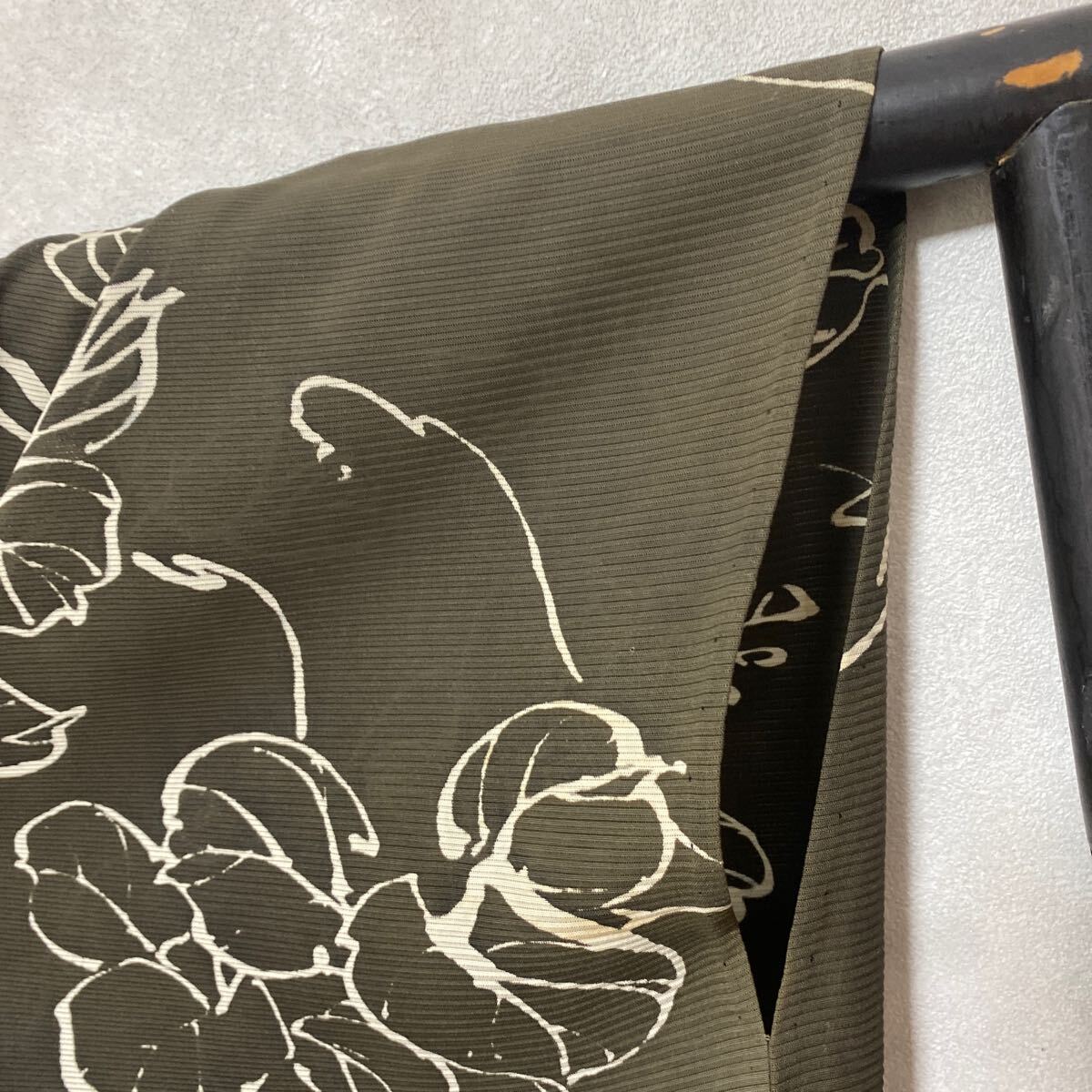アンティーク 単衣 絽 夏物 着物 正絹 昭和レトロ 大正ロマン モダン 和洋折衷コーデ リメイク カーキ色 葉 か10-9w