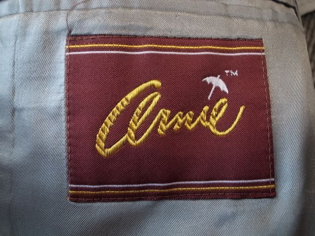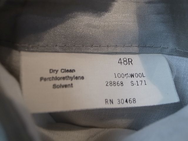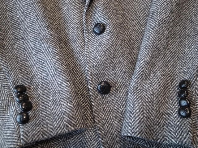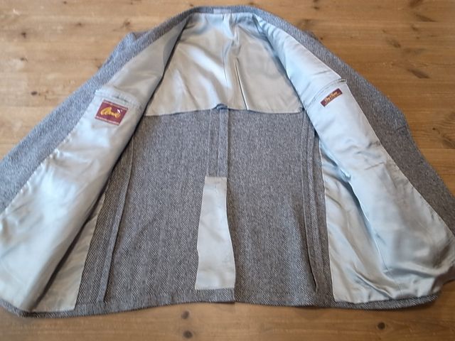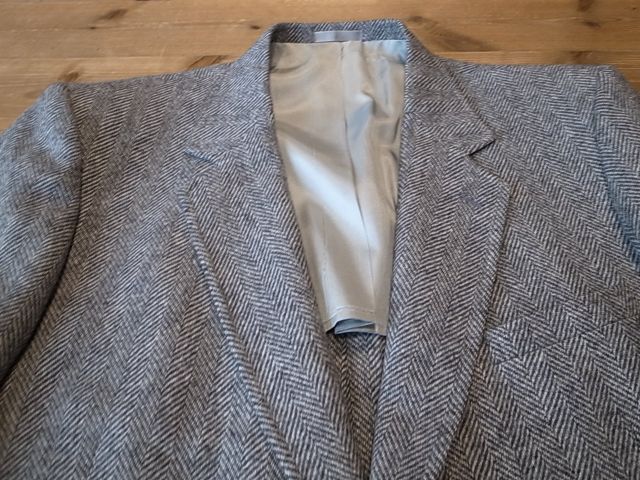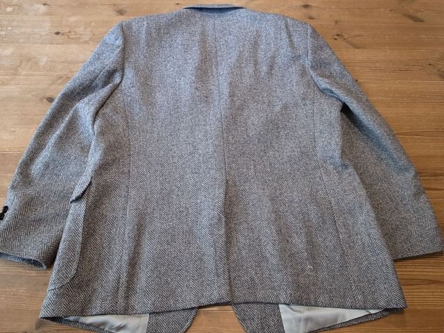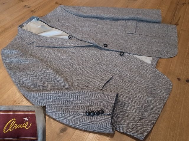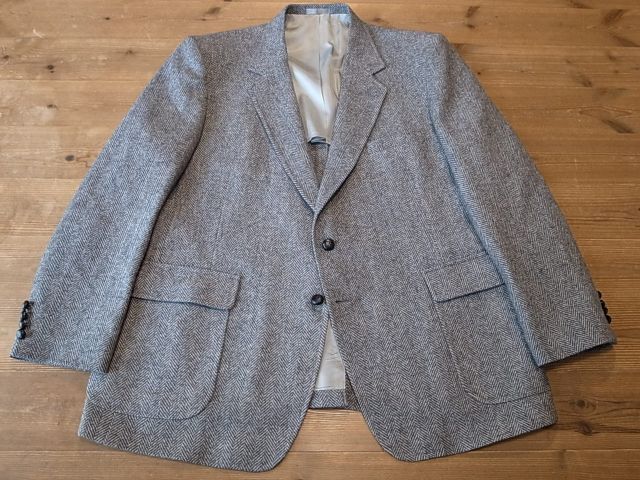 ◆ブランド 「Arnie」 アメリカ古着 ●サイズ表記 48R 実寸サイズ 4XL(5L)相当 肩幅…52cm(肩先から肩先の間の長さ) 身幅…63cm(両脇を横直線に結んだ長さ) 着丈…77cm(後衿ぐり中央から後身頃裾) 袖丈…66cm(袖付けの肩先から袖先) ※平置き状態での素人採寸ですので、多少の誤差はご了承ください。 ●素材…100%WOOL ヘリンボーンツイード素材 ●色…黒×グレーなど ヘリンボーンツイード ●ポケット… フラップパッチポケット ●裏地…背抜き仕立て ●ベント…センターベント ●製造国表記…なし ●状態…使用感は少ない美品です。 ★送料 全国一律 700円 佐川急便 (北海道900円 沖縄その他離島1700円) ※複数ご購入の場合、同梱発送可能です。 |
