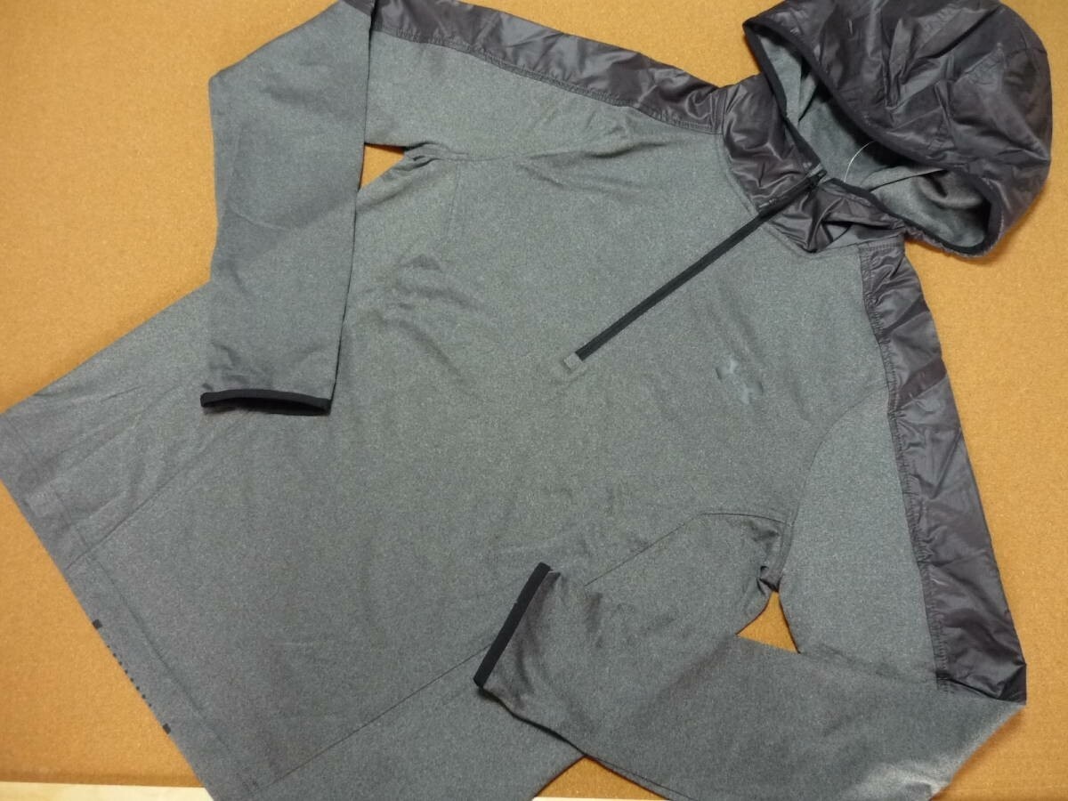 残少 M 入手困難 アンダーアーマー ハイブリッド ハーフジップ フーディ 定価9720 検 防寒 パーカー ランニング ワークアウト グレー 黒 MD