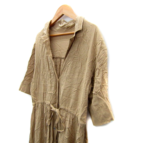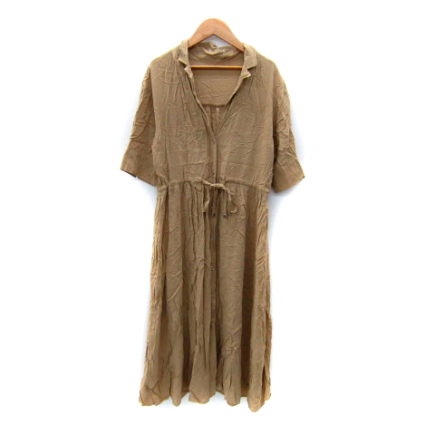 ページボーイ PAGE BOY シャツワンピース ロング丈 オープンカラー 無地 F ライトブラウン /SY29 レディース