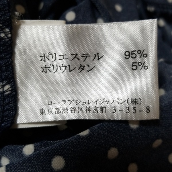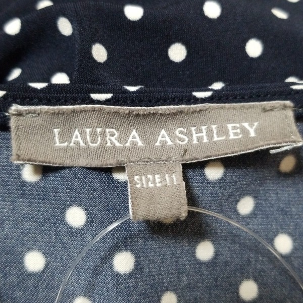 ローラアシュレイ LAURAASHLEY サイズ11 M - ダークネイビー×白 レディース 半袖/ひざ丈/ドット柄 美品 ワンピース