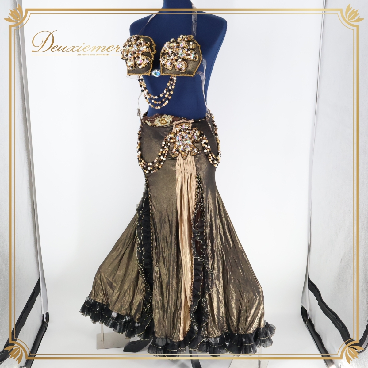 | 商品説明 | 【商品名】ベリーダンス オリエンタル衣装 トップス 【サイズ】 平置き実測:パッド両端長さ約31cm、ネックストラップ右約31cm 左約34cm、 アンダーストラップ全長約82cm、アンダーストラップ(ブラ部分を除く)右約25cm 左約31cm ※実測の為、多少の誤差はご容赦願います。 【仕様】 ・伸縮性無し スカート 【サイズ】 平置き実測:総丈約95cm、ウエスト約34cm、スリット約65cm ※実測の為、多少の誤差はご容赦願います。 【仕様】 ・ウエストファスナー仕様 ・伸縮性無し ・前2ヶ所スリット有り ------------------------------------ 【ポイント】 ▽ゴールド×黒 ▽スカート裾のフリルがかわいい ▽トップス スカート セット ------------------------------------ 【撮影時使用トルソー:女性用トルソー9号(一般的に使用されるサイズです)】 トルソーサイズ詳細 肩幅約37cm、バスト約88cm、ウエスト約66cm、ヒップ約89cm |