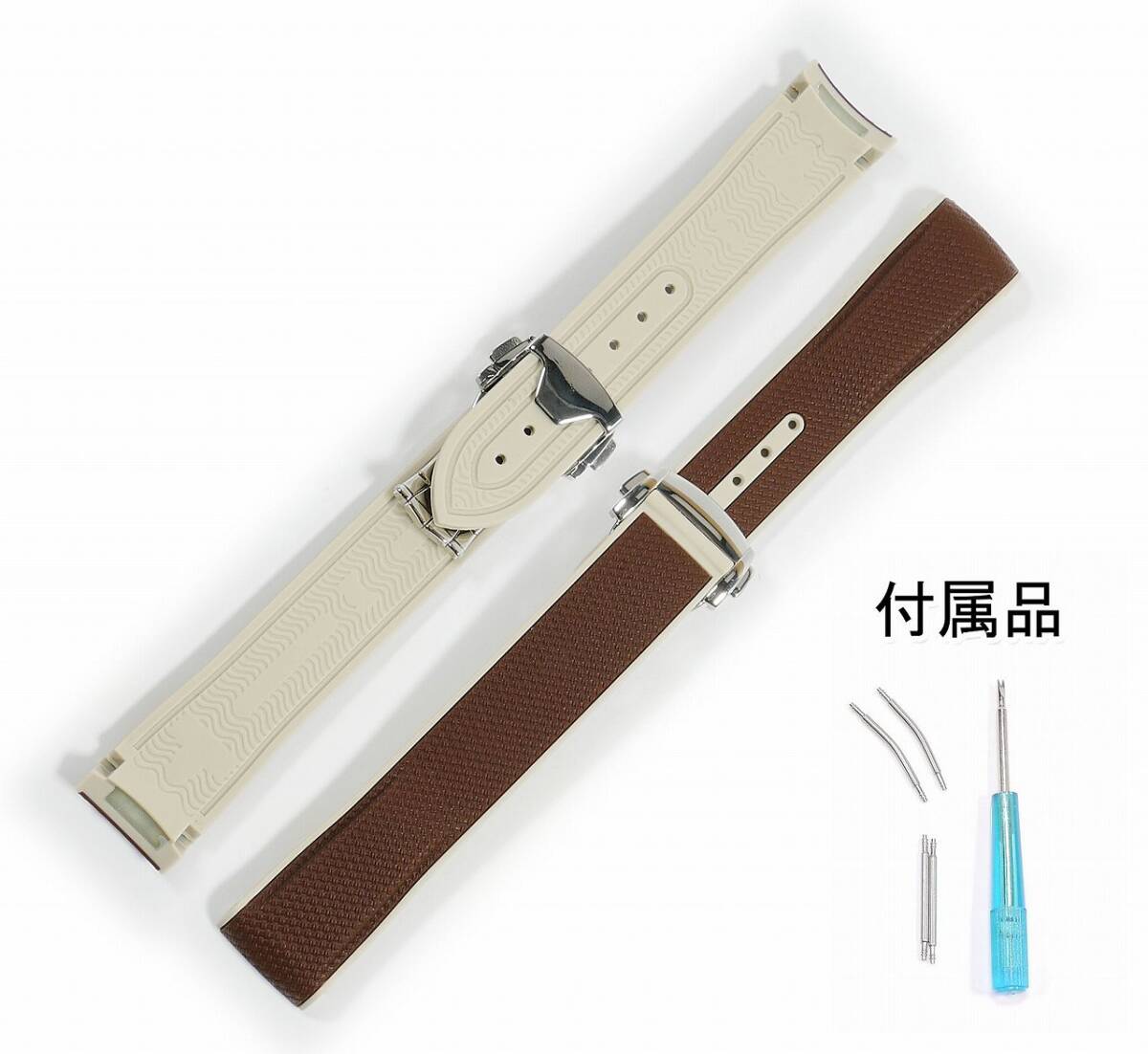 ・Saturnに似合うブラウン&ベージュのラバーベルトにシルバーのDバックルです。