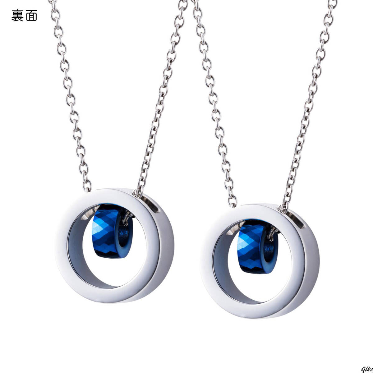 【鮮やかなブルーのキュービックジルコニアがアクセントに】 ペアネックレス カップル 記念日 ギフト ステンレス アレルギー対応 シルバー