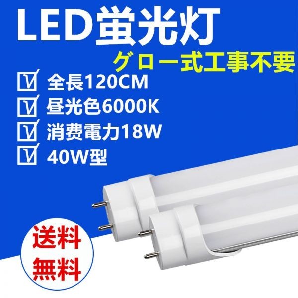 送料無料 LED蛍光灯 直管 40W型 120cm 昼光色 グロー式工事不要 LED照明ライト6本セット