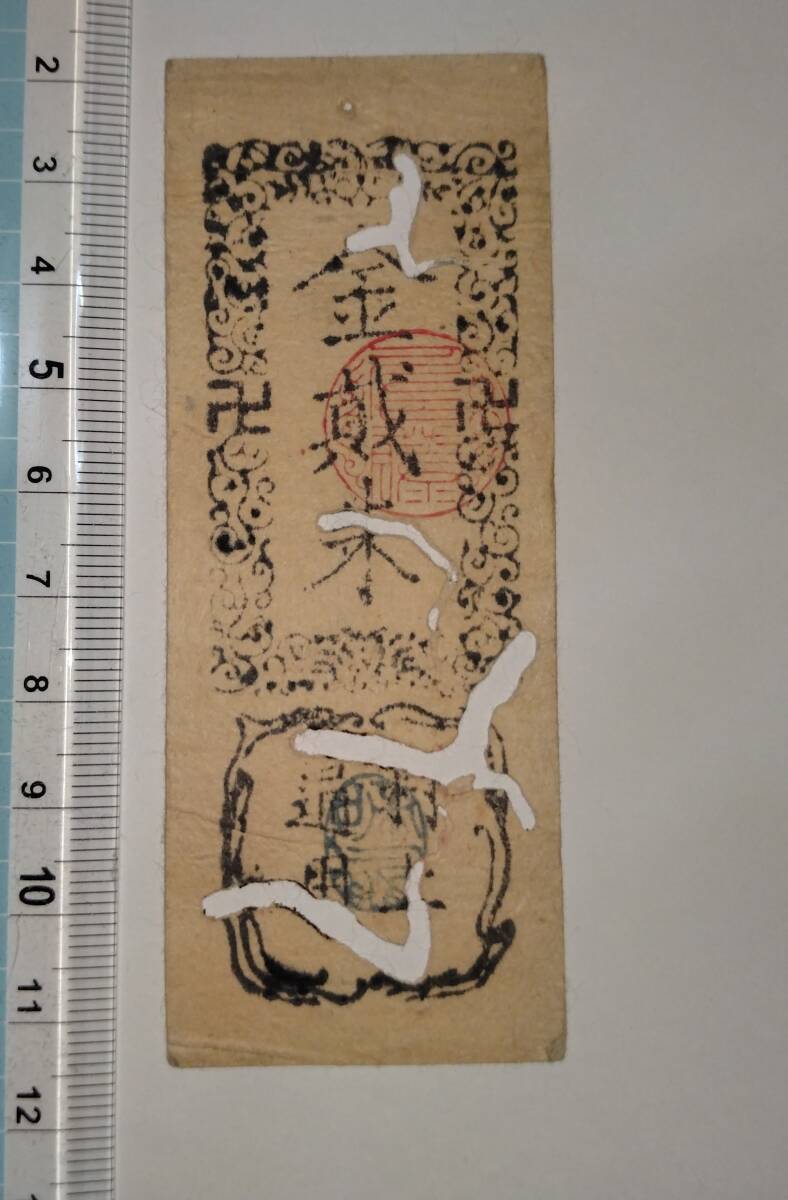 村上藩札は明治2年に発行されたと考えられるので発行通用から150年以上経過した藩札の為 古札、古紙幣の特性上、欠点なしの品や美品を求められる方はトラブル防止の為に入札御遠慮くださいませ。