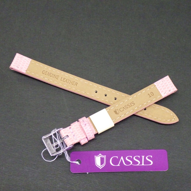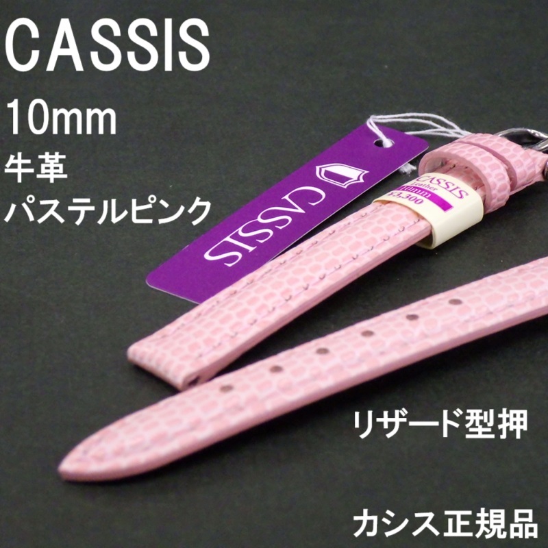 送料無料 バネ棒付き 特価 新品★CASSIS 時計ベルト 10mm パステルピンク 牛革バンド リザード型押し★カシス正規品 定価税込3,300円