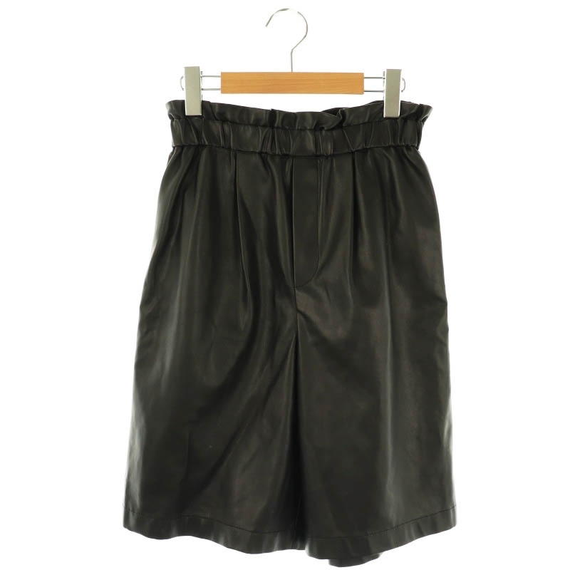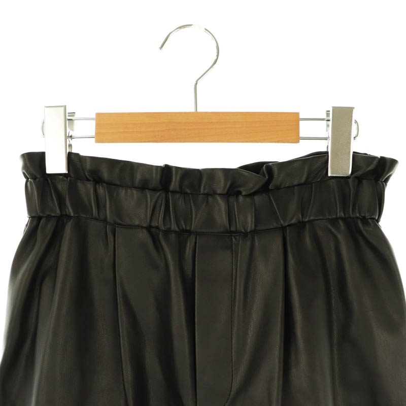 マカフィー MACPHEE トゥモローランド フェイクレザー ウエストギャザーハーフパンツ タック 36 ブラック /HK ■OS レディース