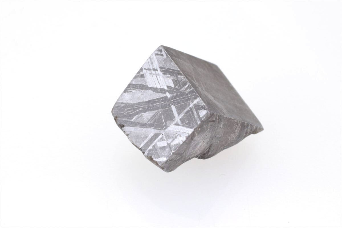 オクタヘドライトという名前はテーナイトの結晶格子の角にカマサイトが成長し八面体(オクタへドロン)構造になることに由来しており、酸処理を施すとカマサイトよりも酸に溶けにくいテーナイトが浮かび上がり特徴的な模様のウィドマンシュテッテン構造が現れます。ウィドマンシュテッテンとは構造を一番初めに論文として発表したカウント・アロイス・フォン・ウィドマンシュテッテン氏からきています。