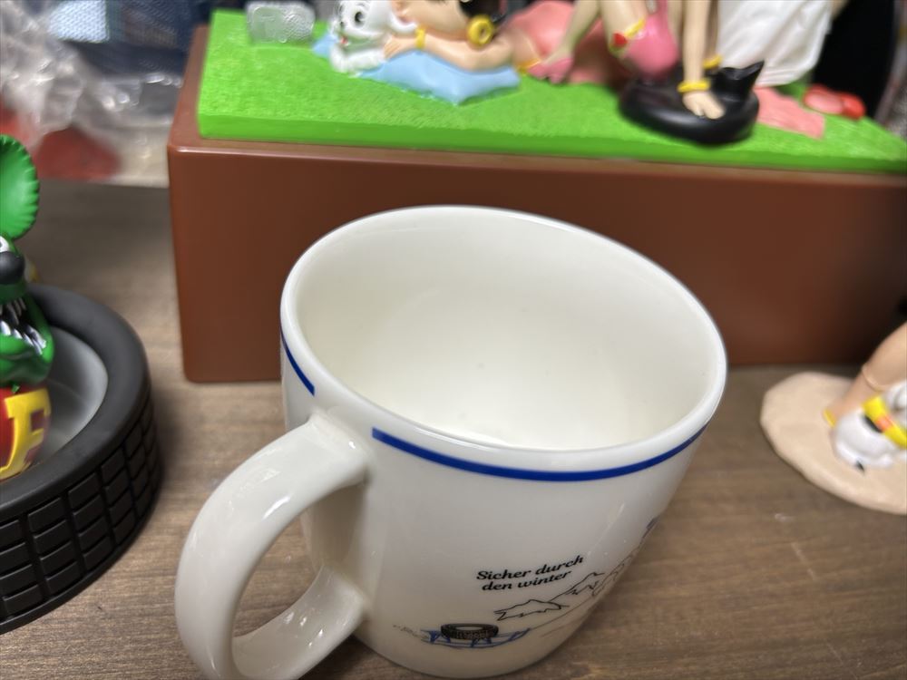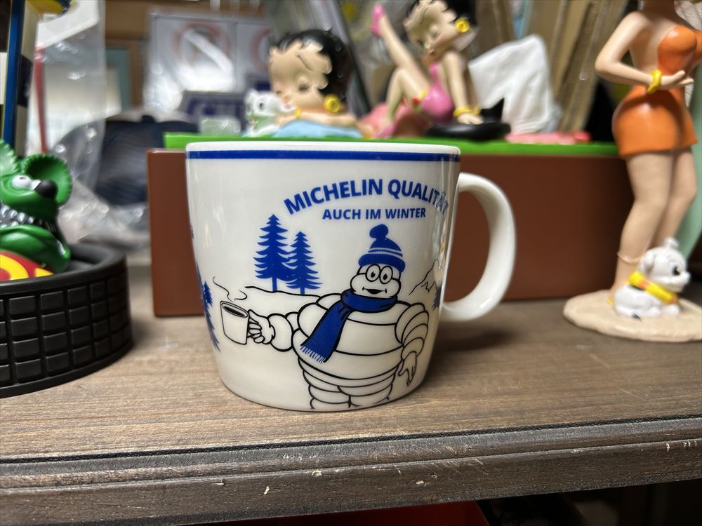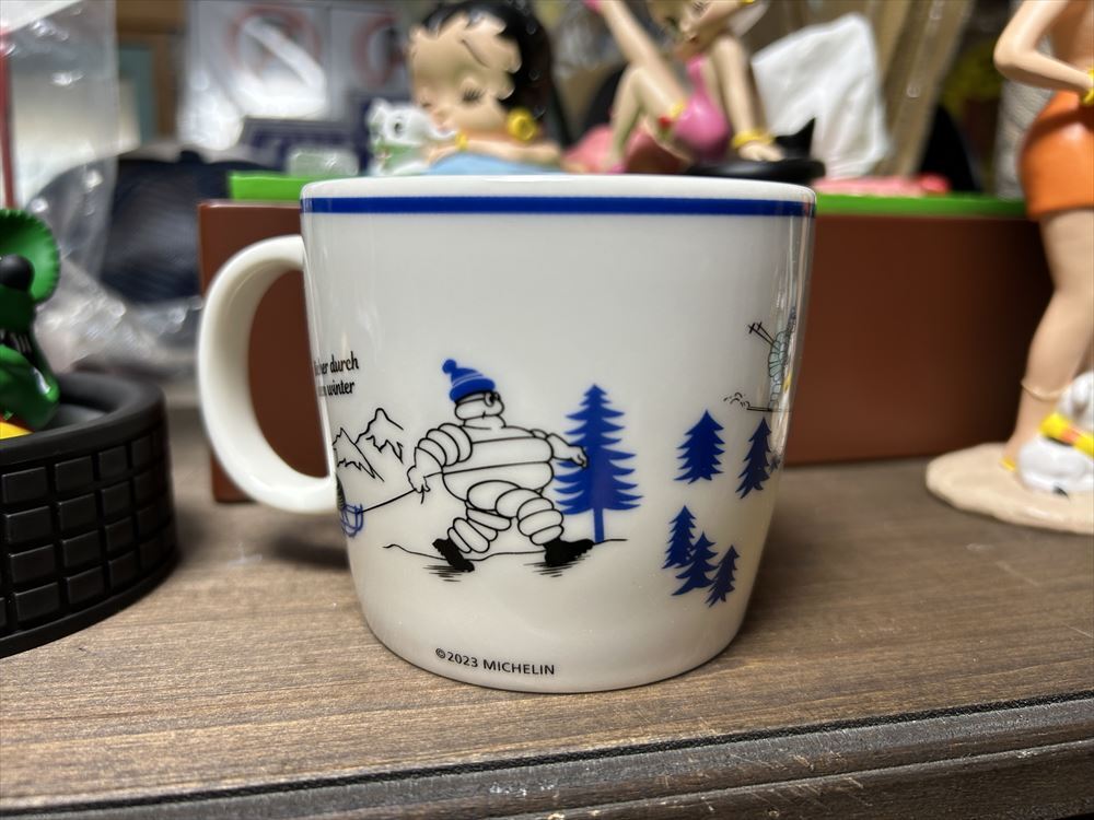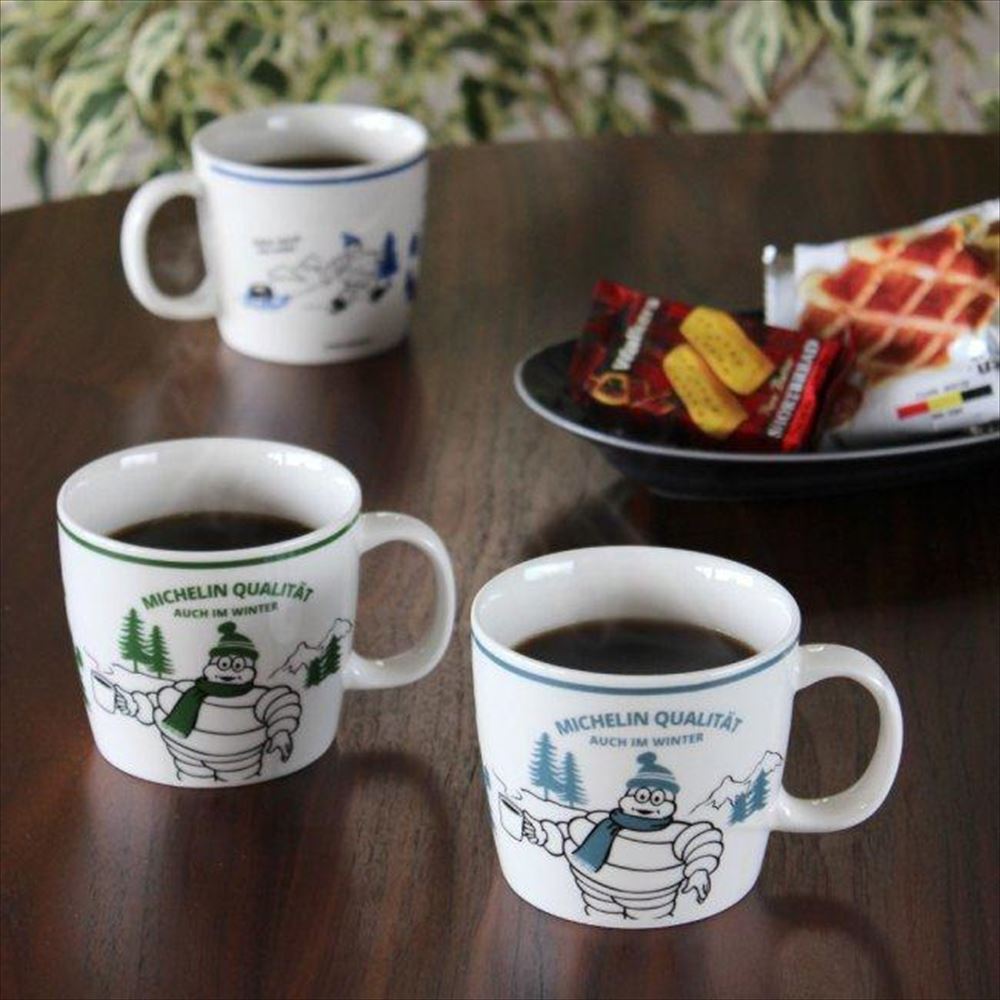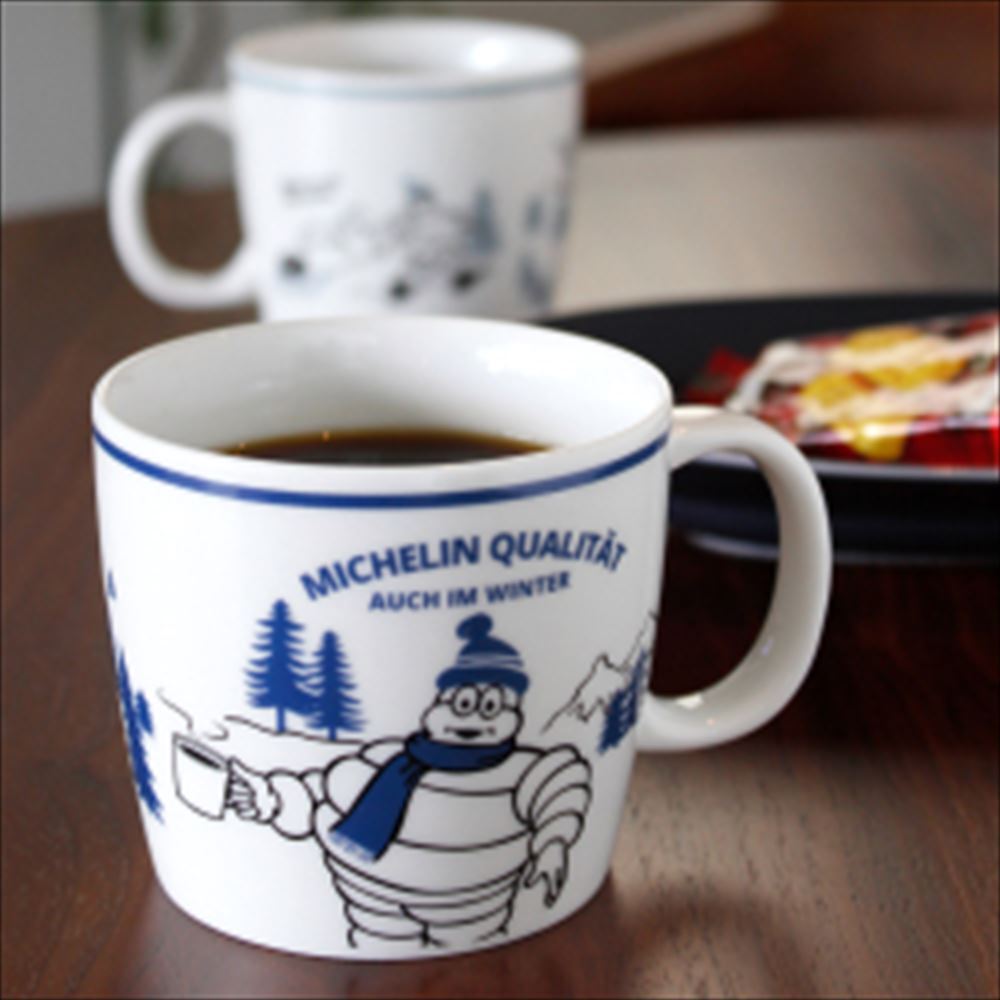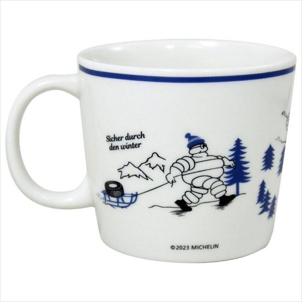 【216089】ミシュラン マグカップ ドイツ語で「冬でもミシュランの品質!」と書かれたポスターからのデザインです。ミシュランマンも冬も安全にスキーやソリを楽しんでいるようです。コロンとしたタル型の形状がが手に持った時に包み込みたくなるようなフォルムのマグカップです。Size : 約φ8.8×H7.8cm素材 : 陶器容量 : 320m